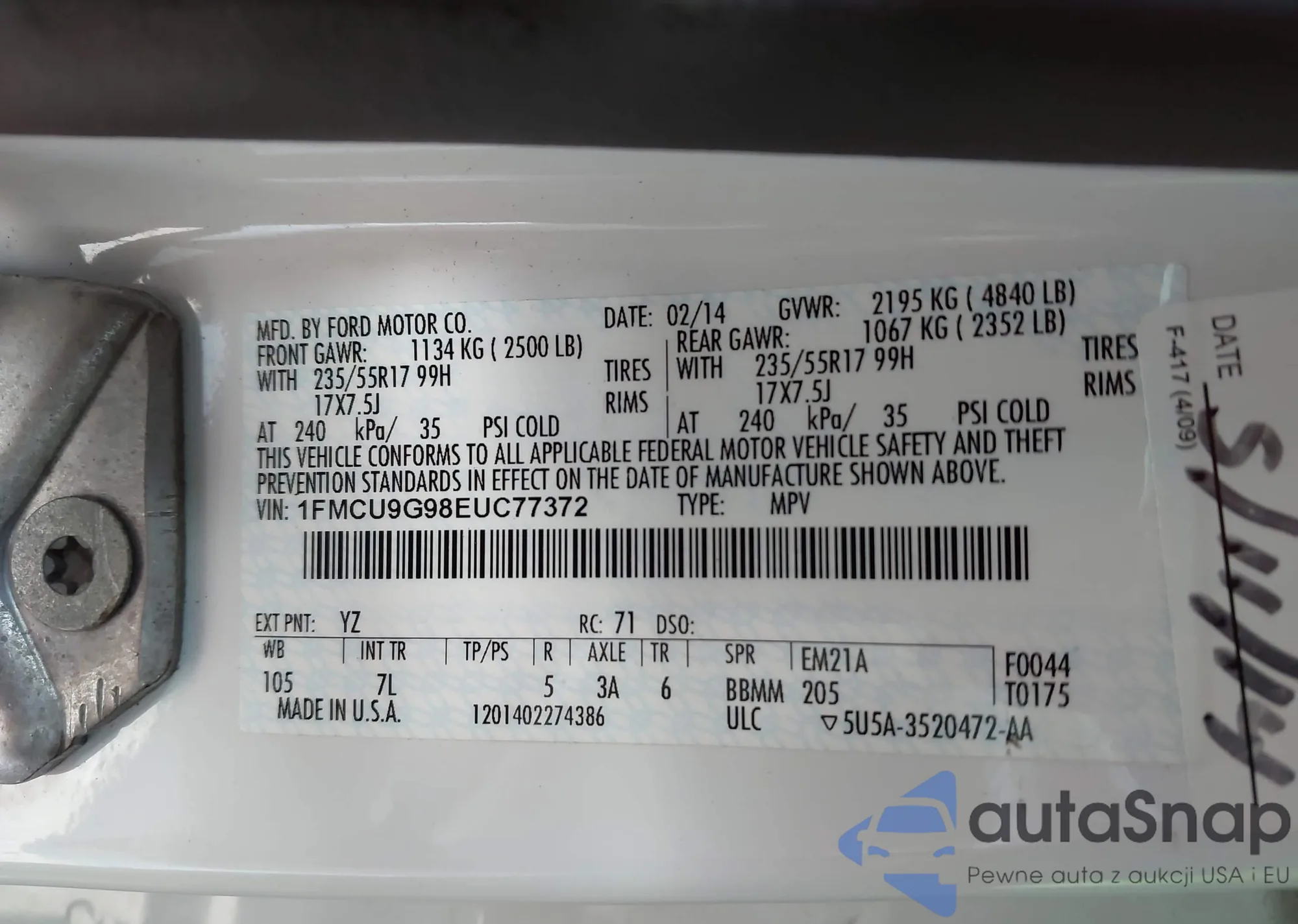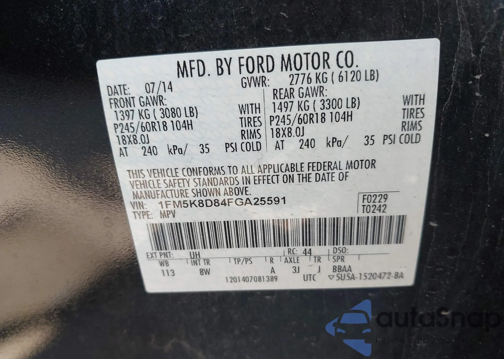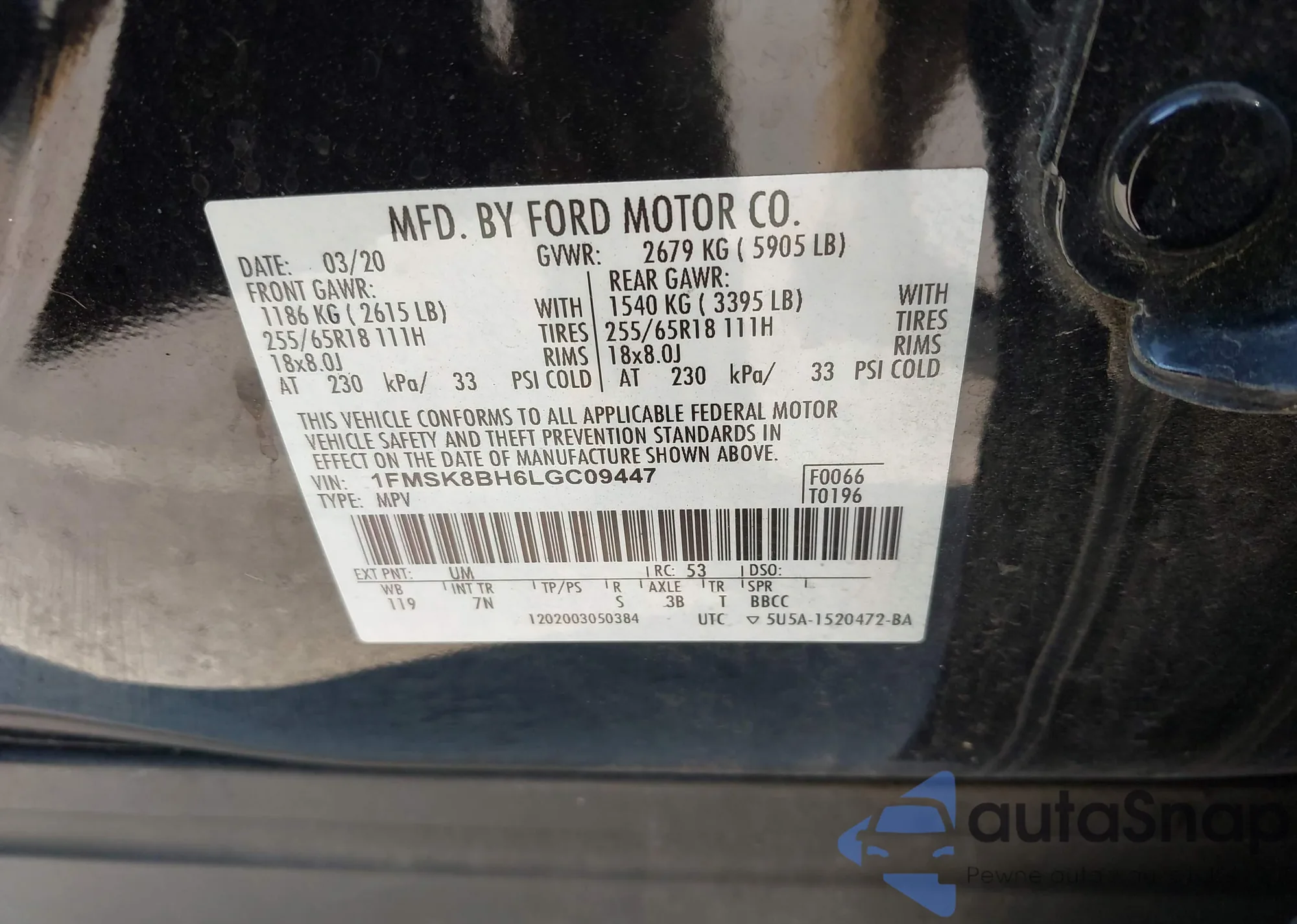 • VIN 1FMSK8BH6LGC09447
