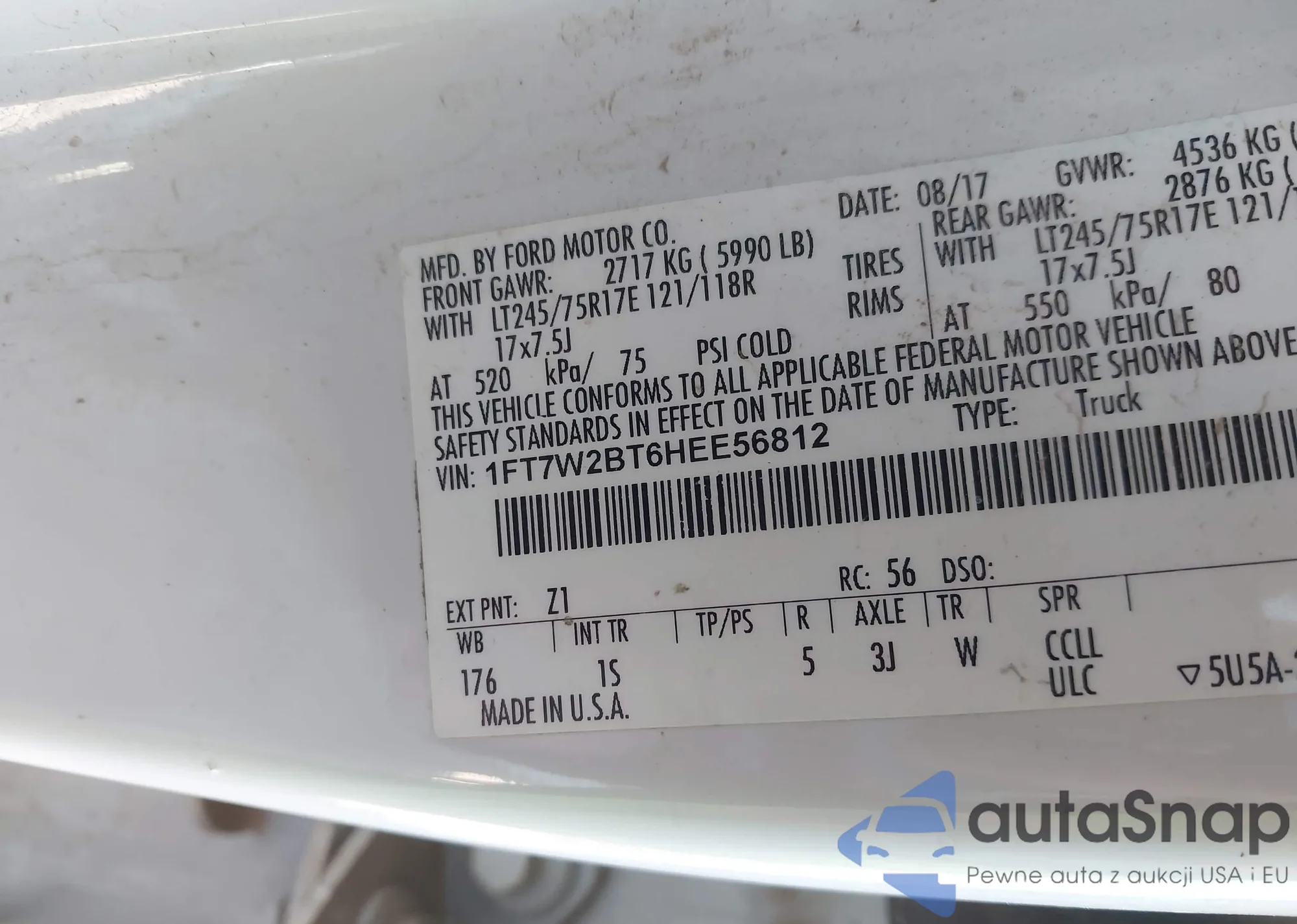• VIN 1FT7W2BT6HEE56812
