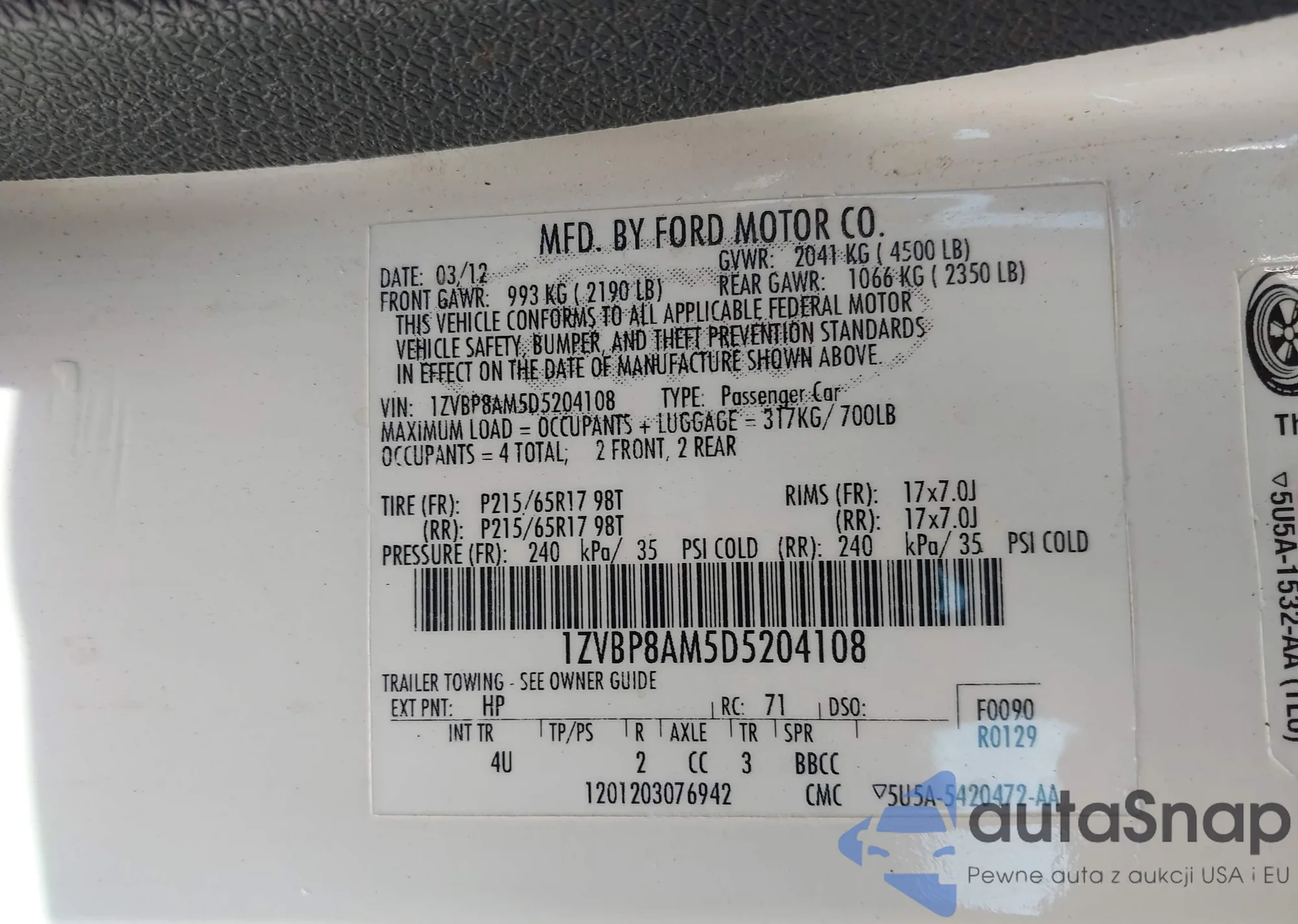 • VIN 1ZVBP8AM5D5204108