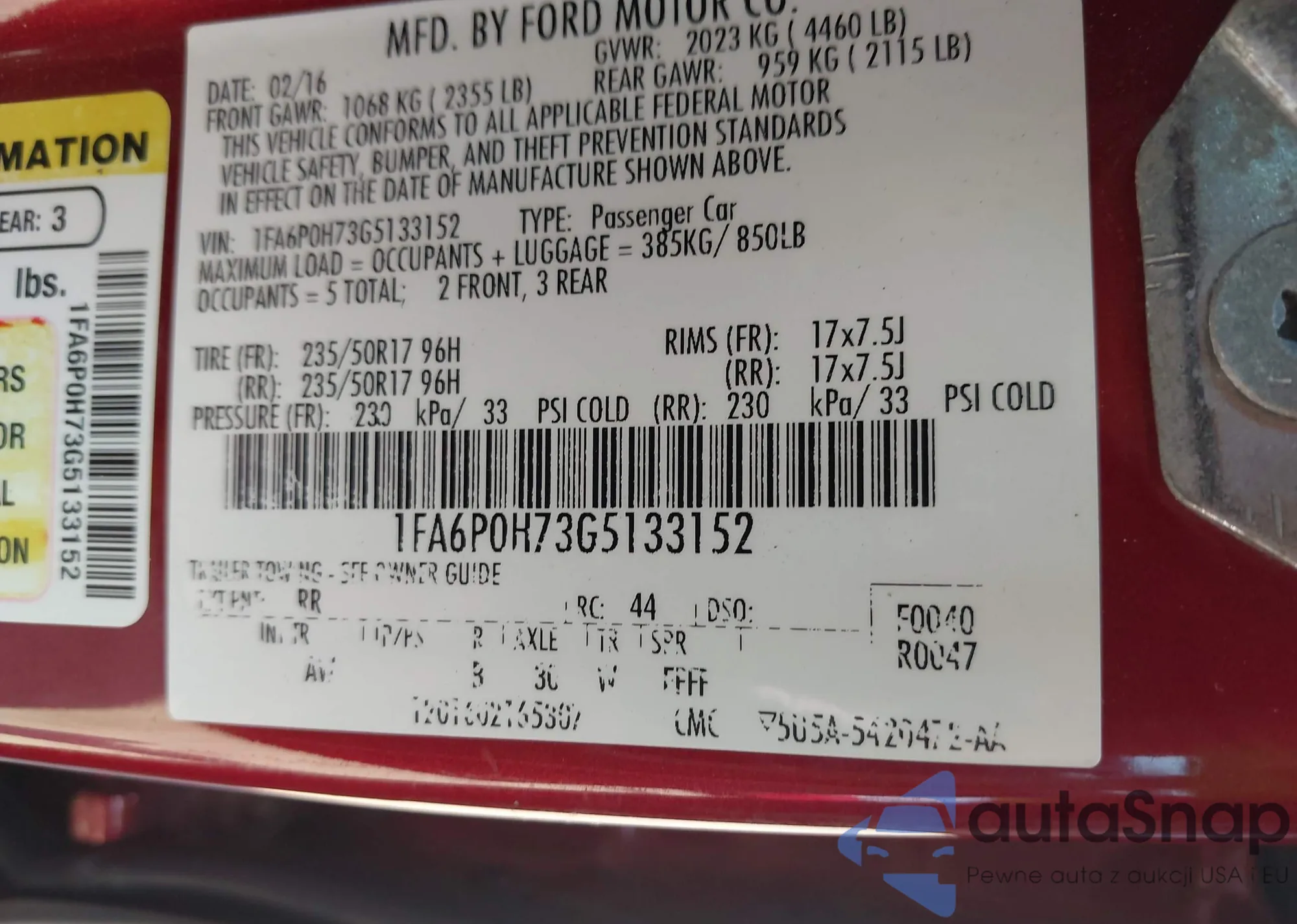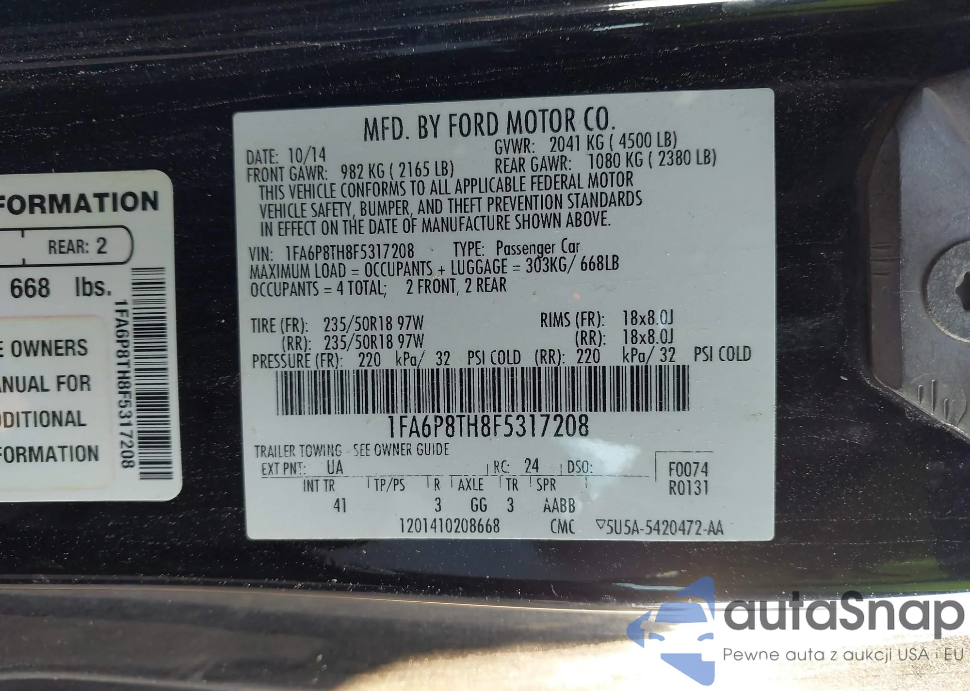 • VIN 1FA6P8TH8F5317208