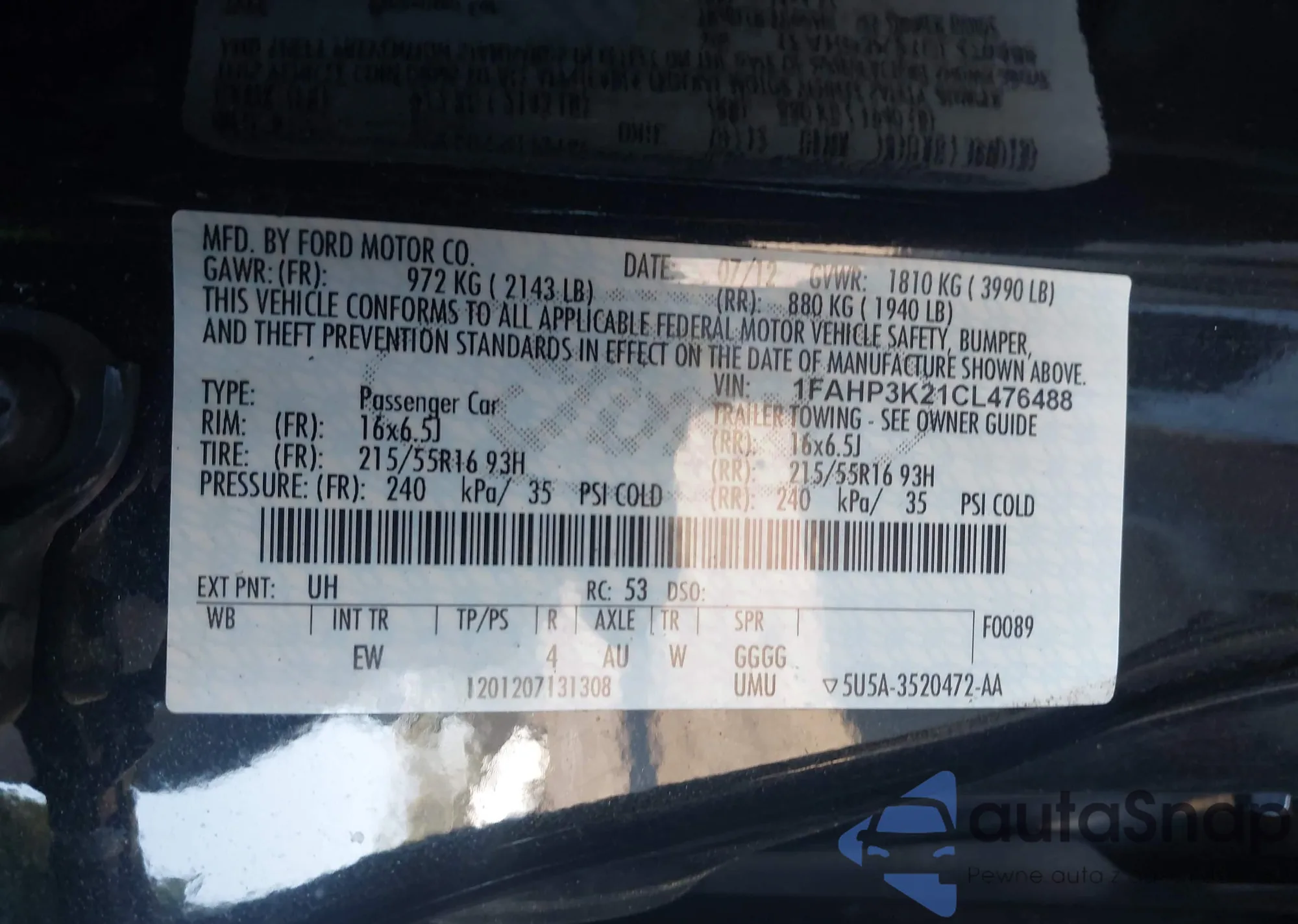 • VIN 1FAHP3K21CL476488