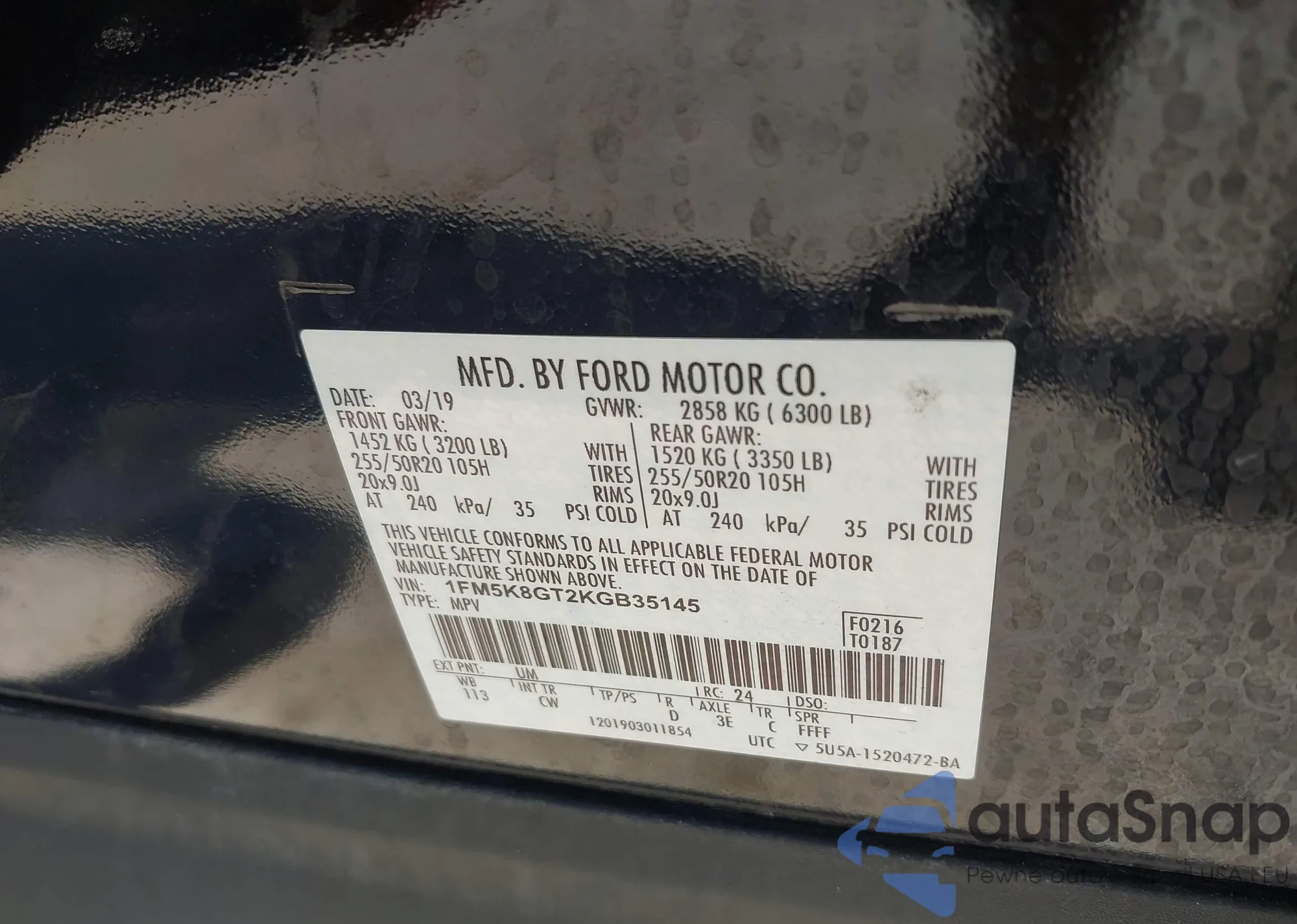 • VIN 1FM5K8GT2KGB35145