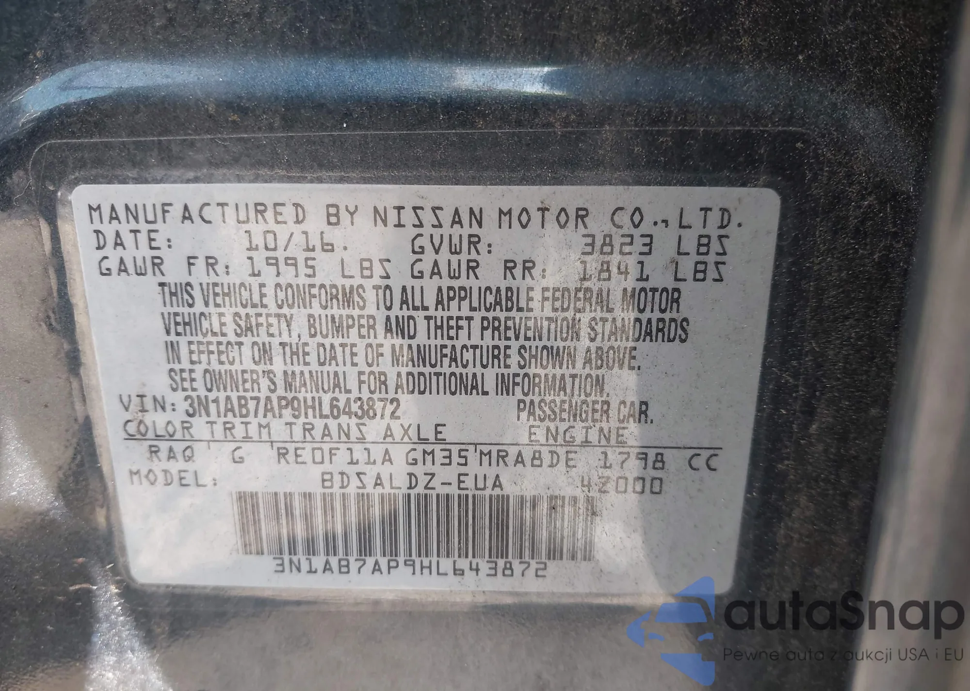 • VIN 3N1AB7AP9HL643872