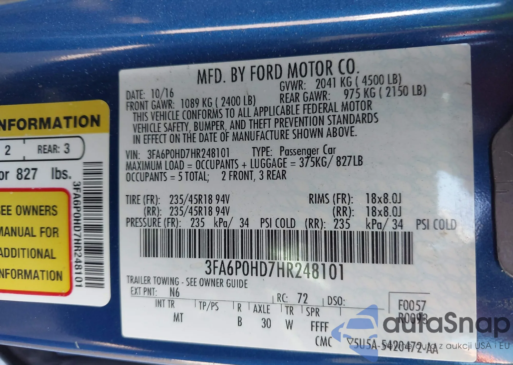 • VIN 3FA6P0HD4ER153779