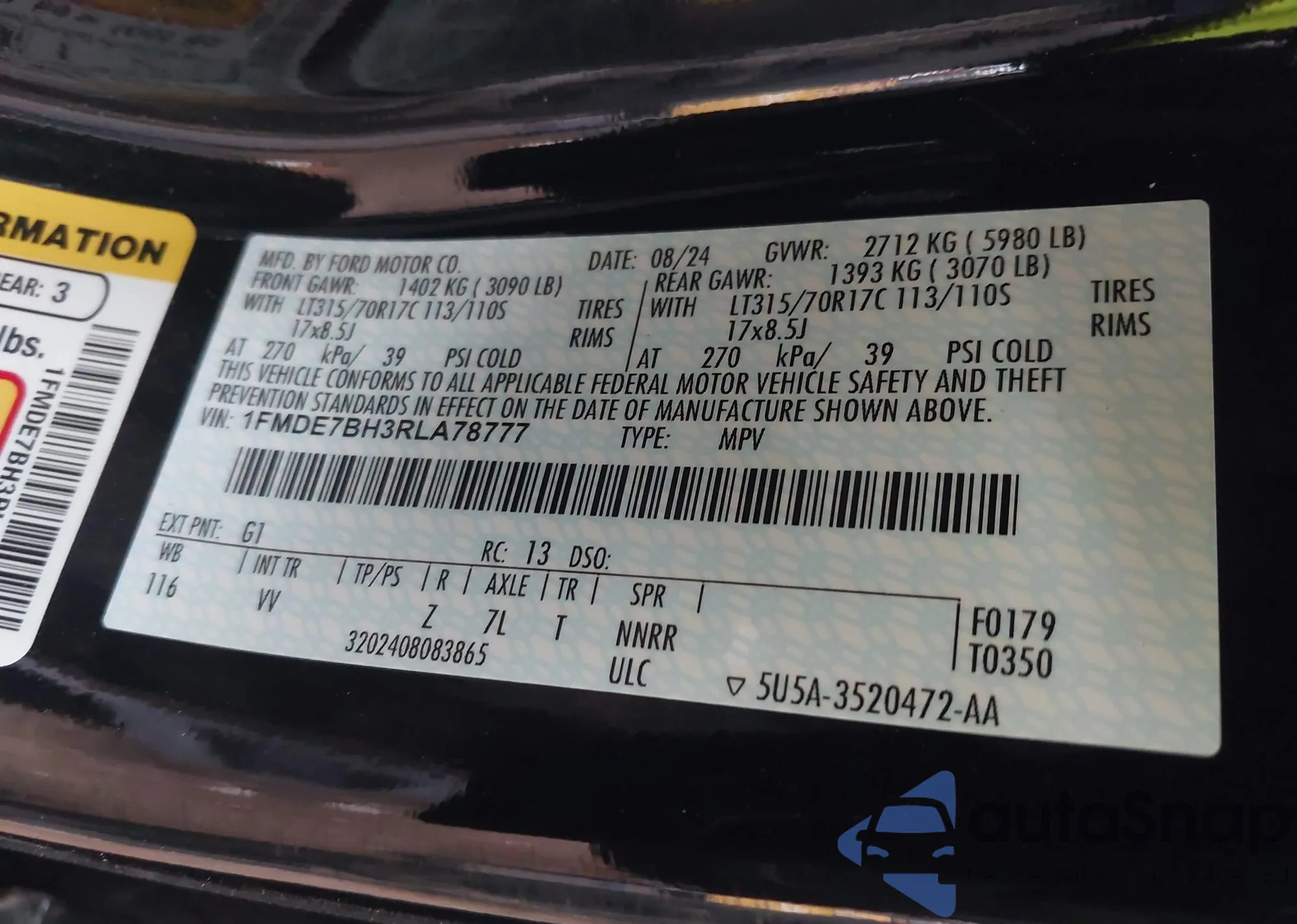 • VIN 1FMDE7BH3RLA78777