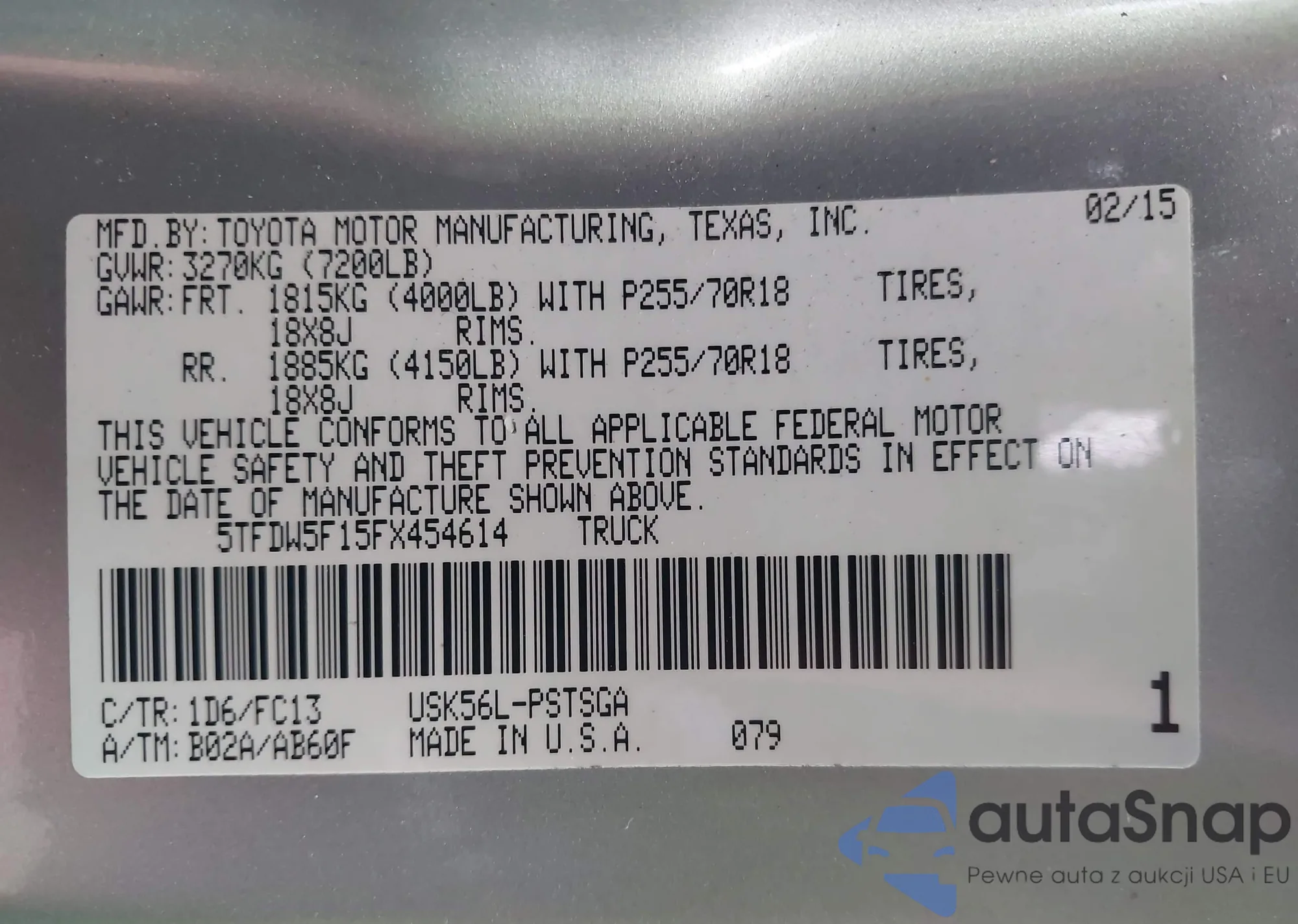 LOT: 43264142 VIN: 1FTFW1E56PKF72837