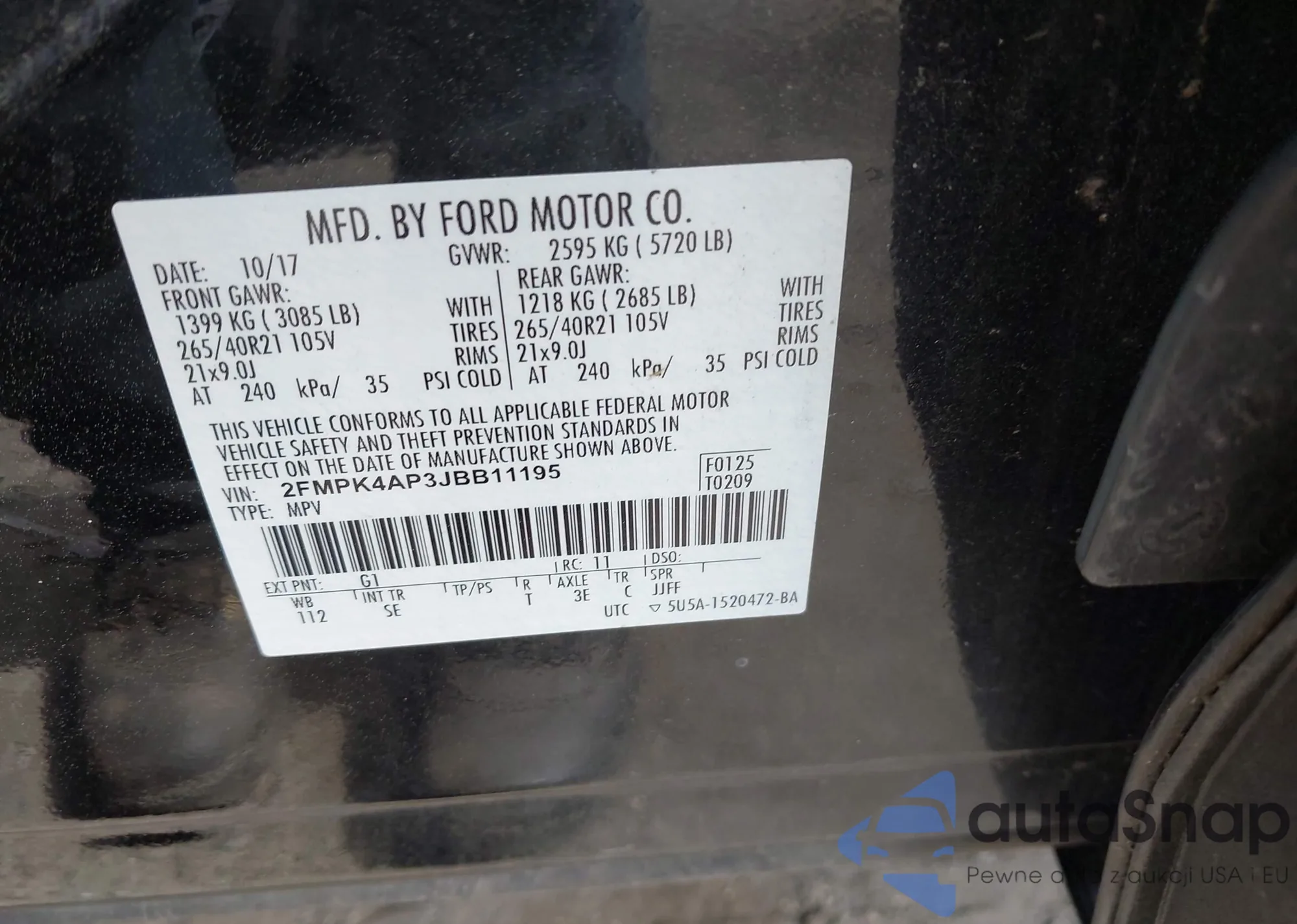 LOT: 42388301 VIN: 2FMPK4AP3JBB11195