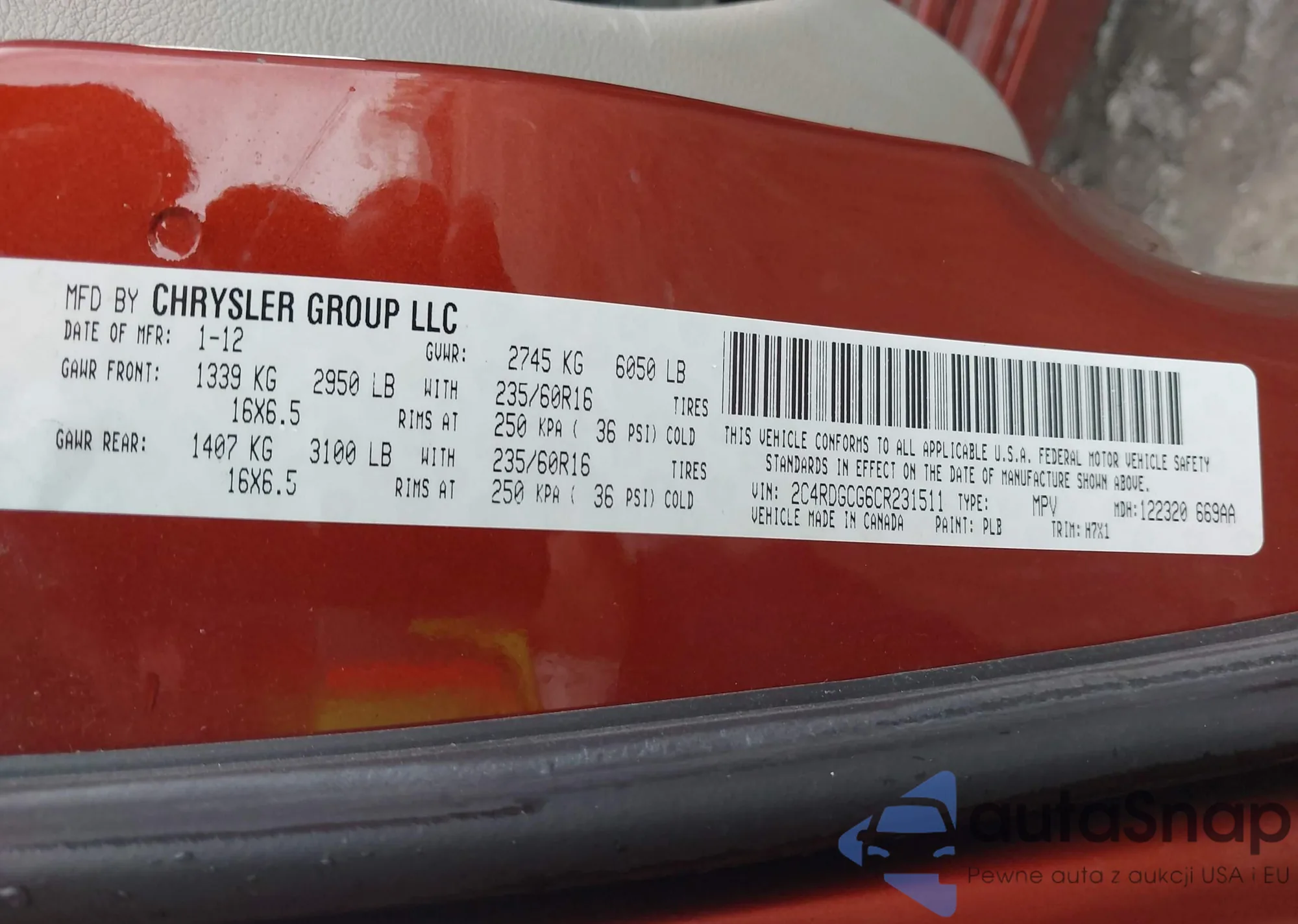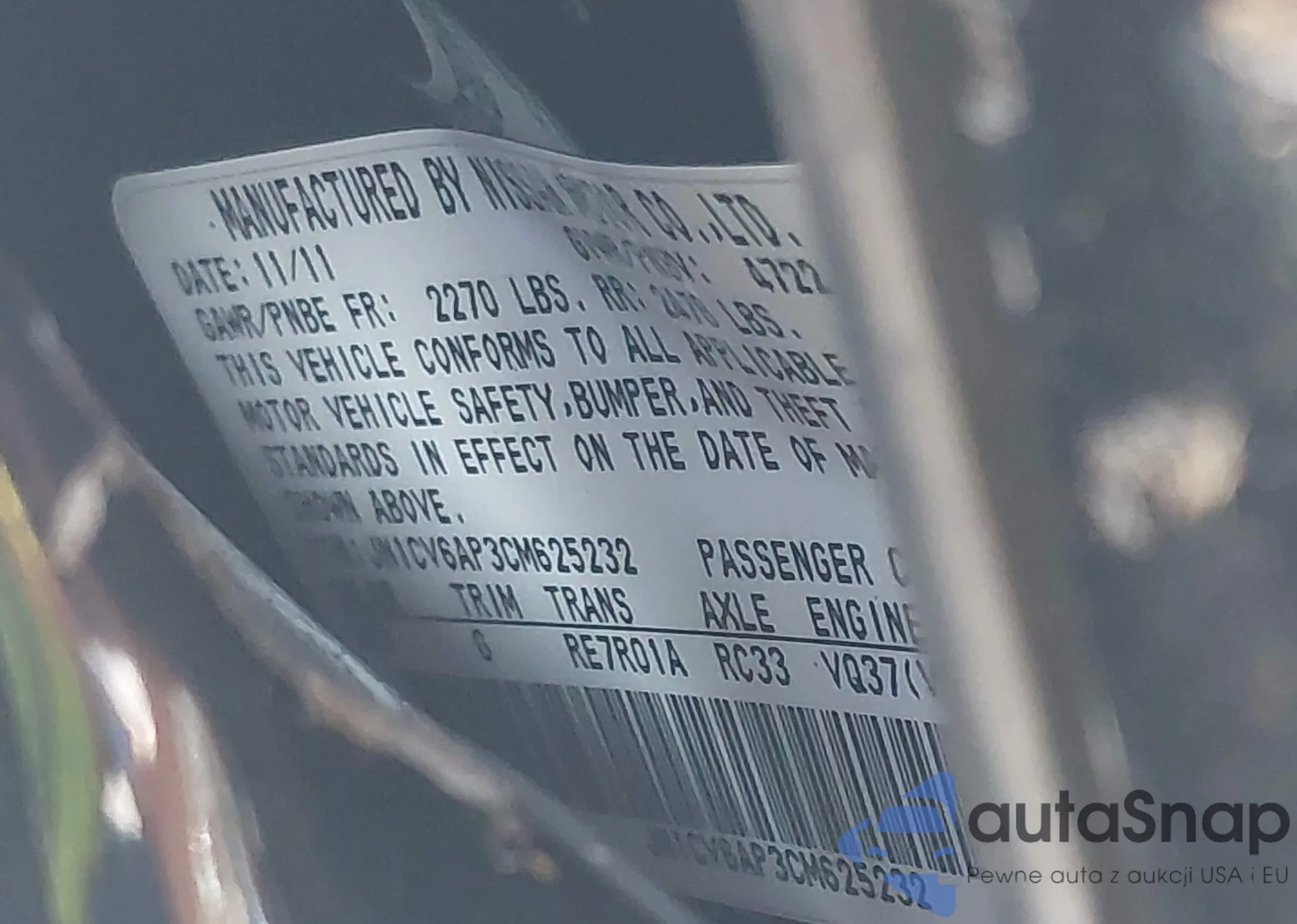 LOT: 43334441 VIN: JN1CV6AP3CM625232