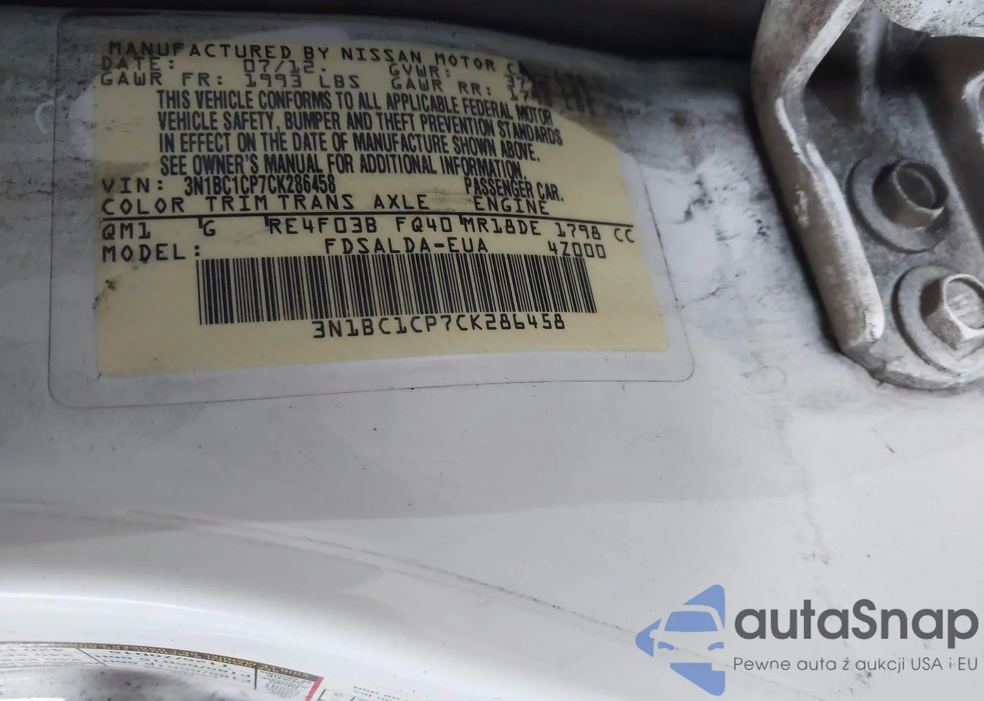 • VIN 3N1BC1CP7CK286458