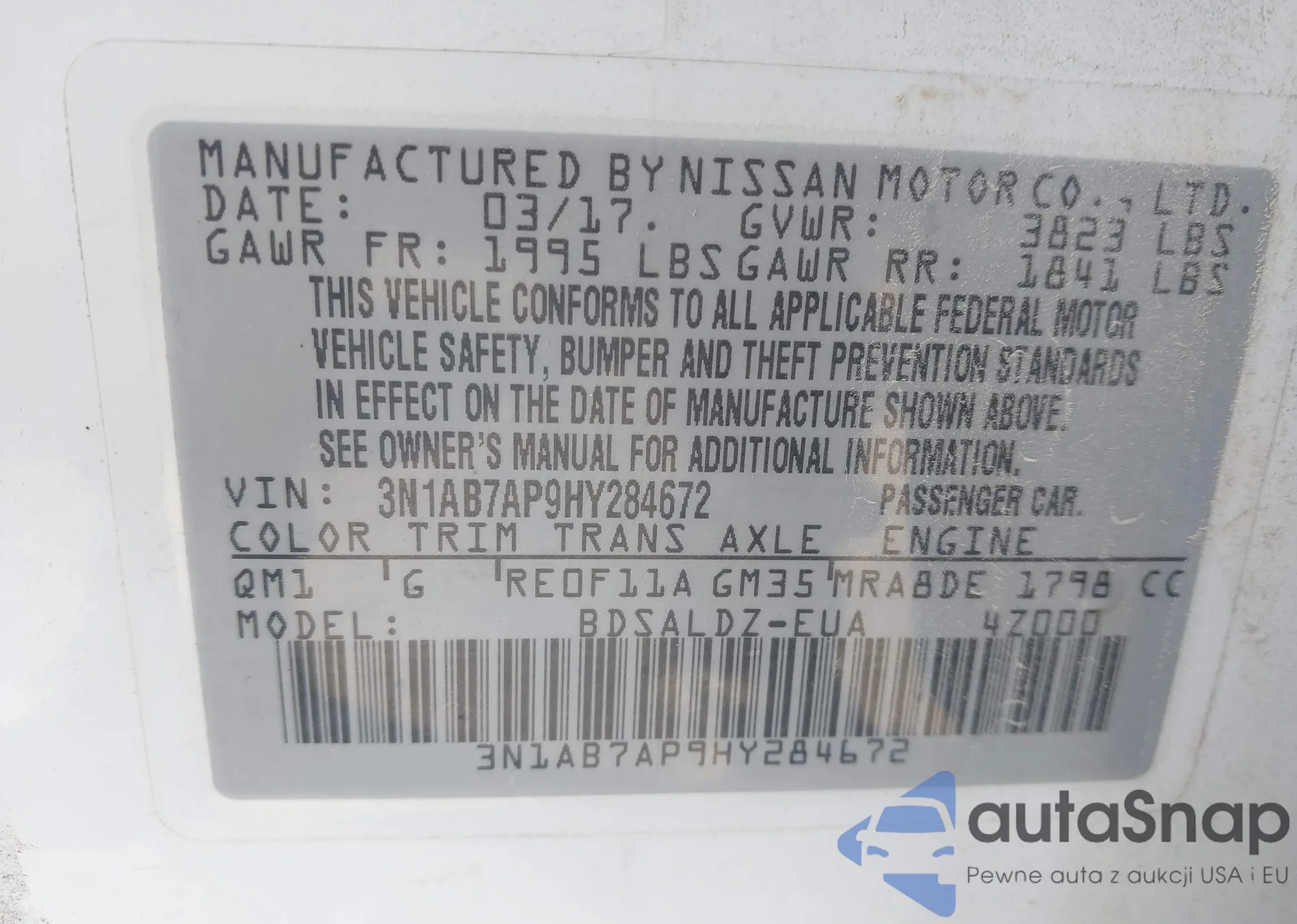 • VIN 3N1AB7AP9HY284672