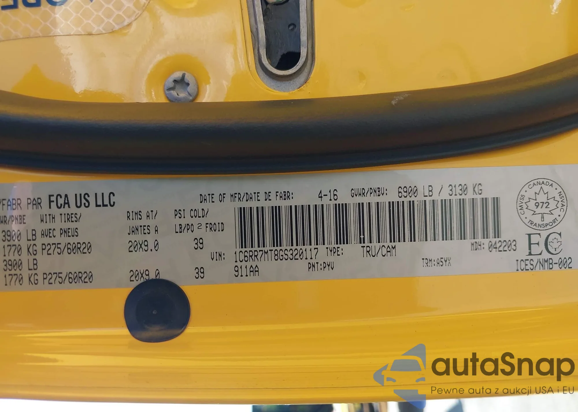 • VIN 1C6RR7MT8GS320117