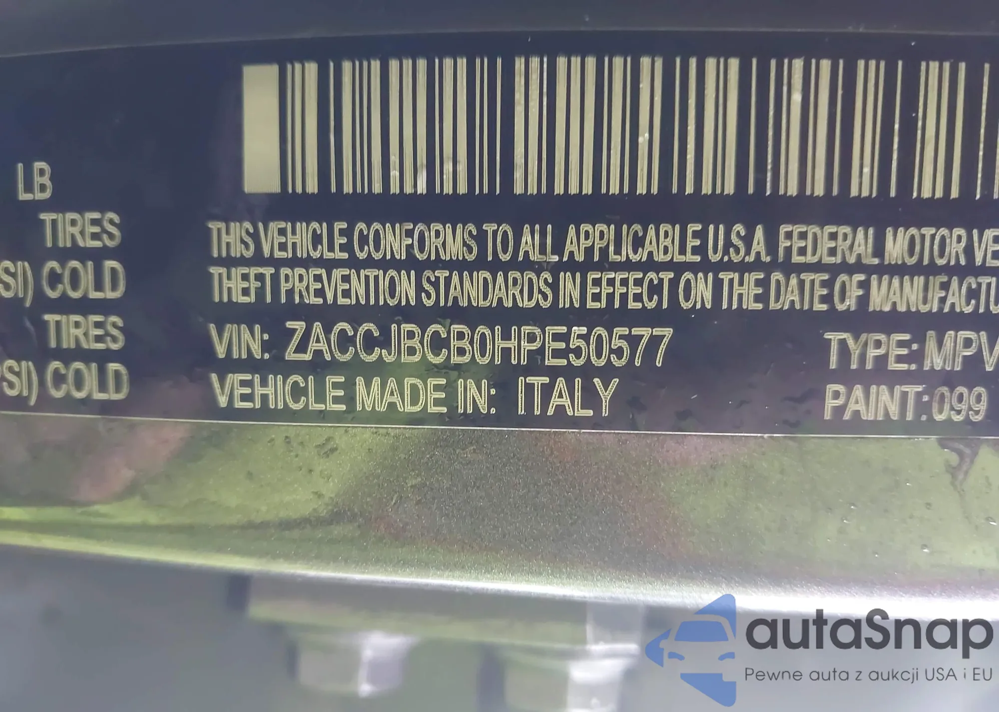 • VIN ZACCJBCB0HPE50577