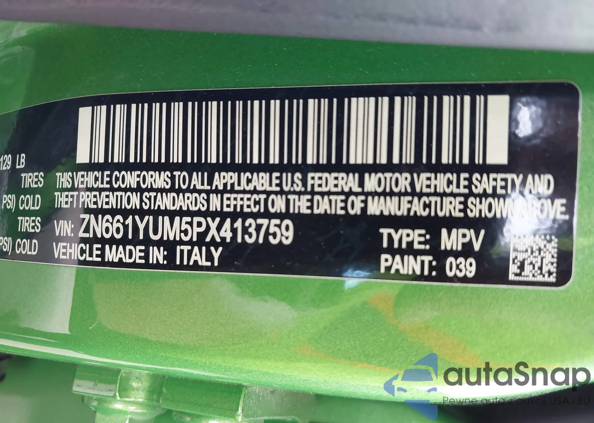 • VIN ZN661YUM5PX413759