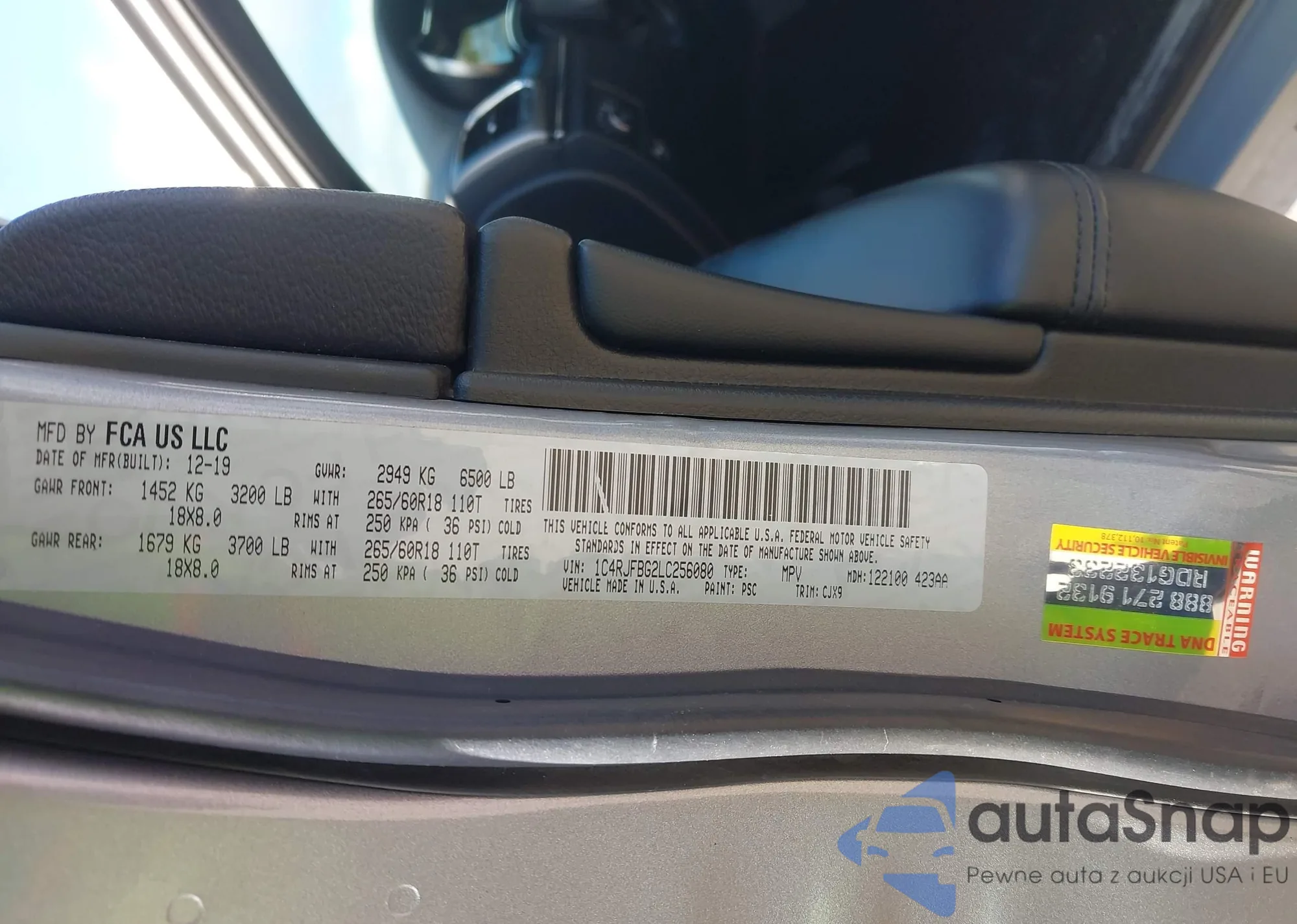LOT: 43293236 VIN: 1C4RJFBG2LC256080