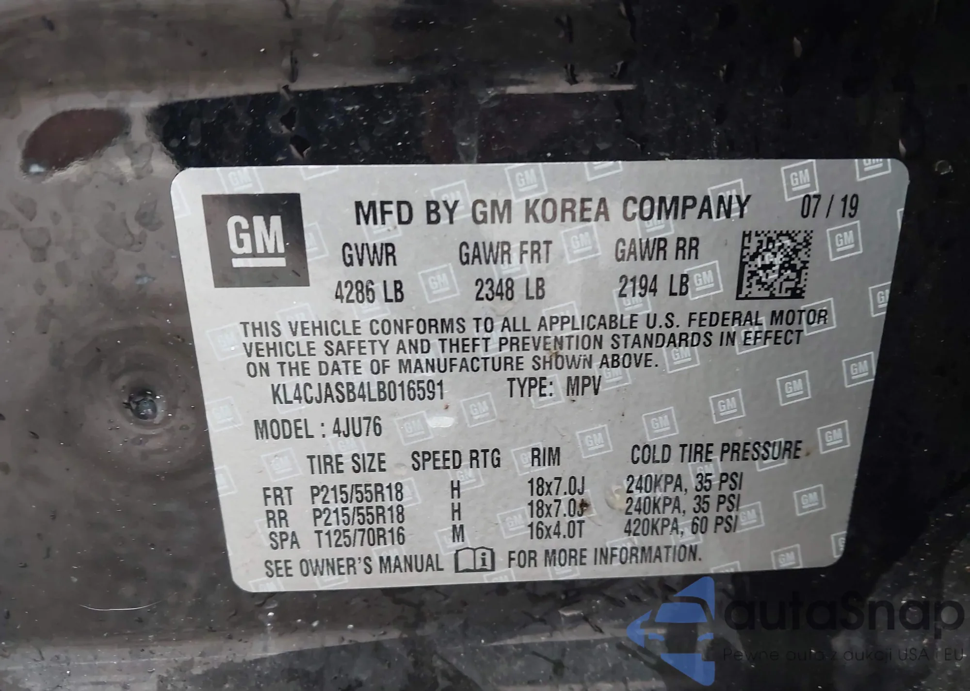 LOT: 43270274 VIN: KMHLM4DG8RU774336