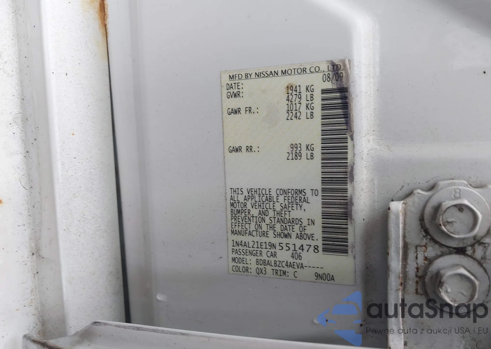 LOT: 43306547 VIN: 1N4AL21E19N551478