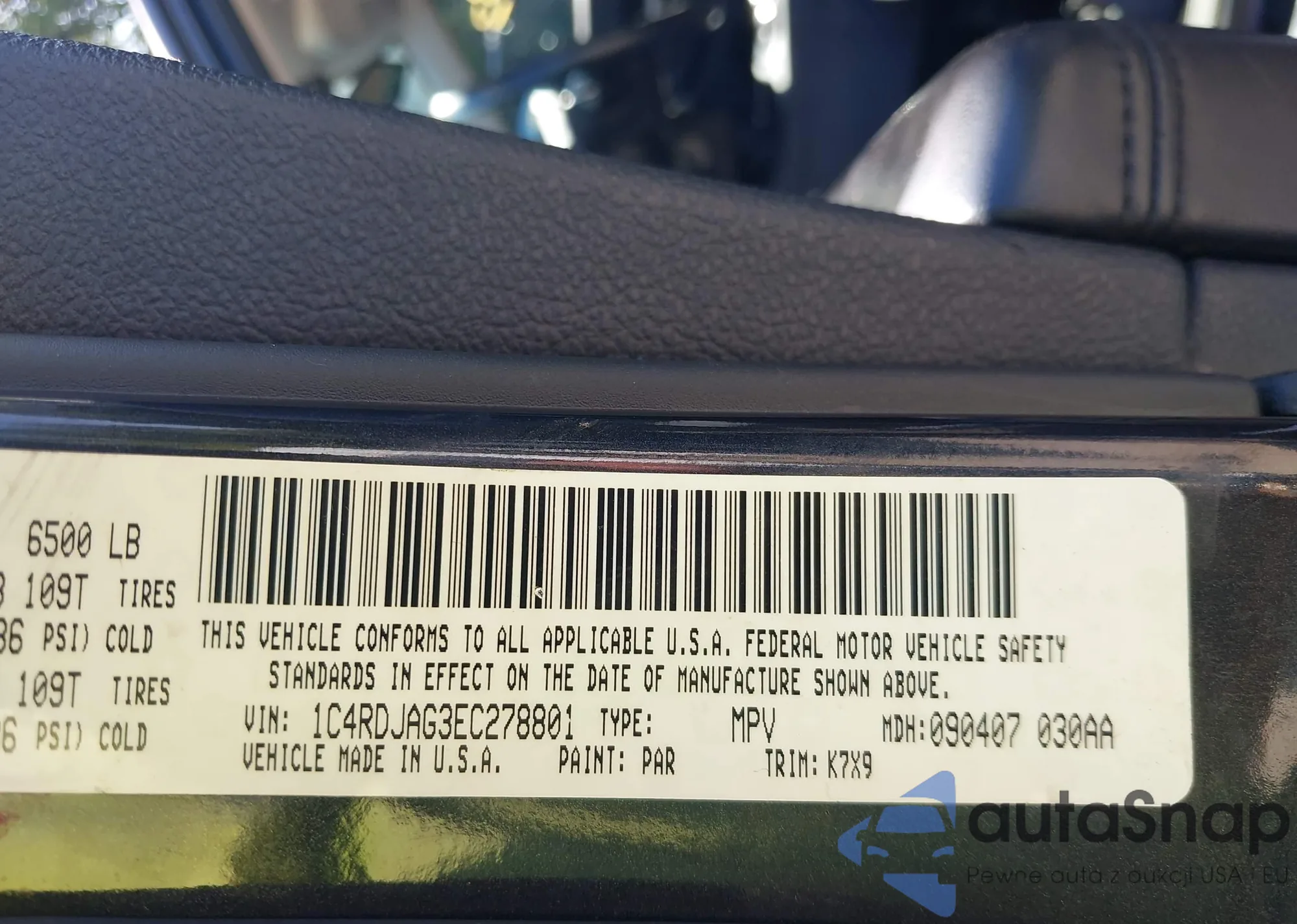 • VIN 1C4RDJAG3EC278801