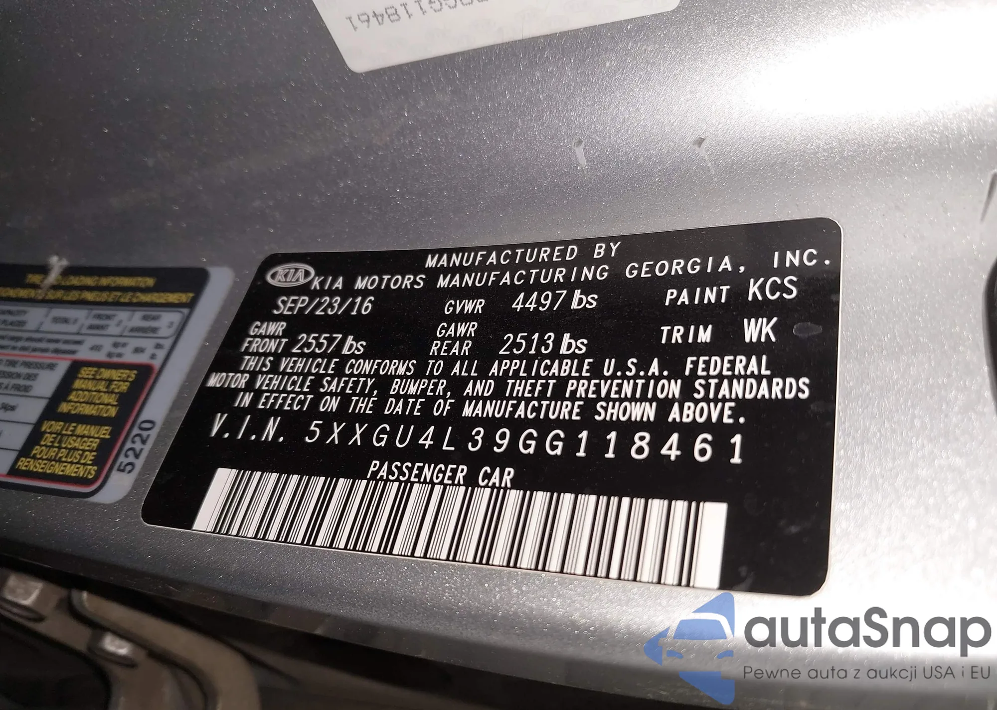 • VIN 5NPE24AF5HH581648