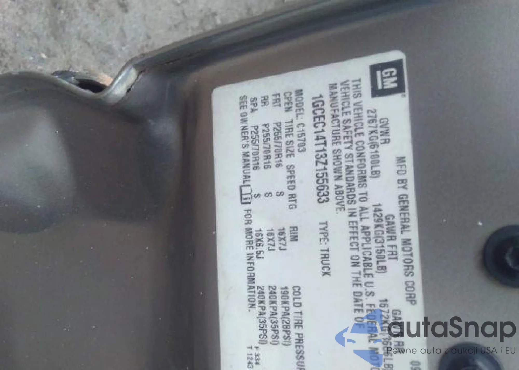 • VIN 1GCEC14T13Z155633