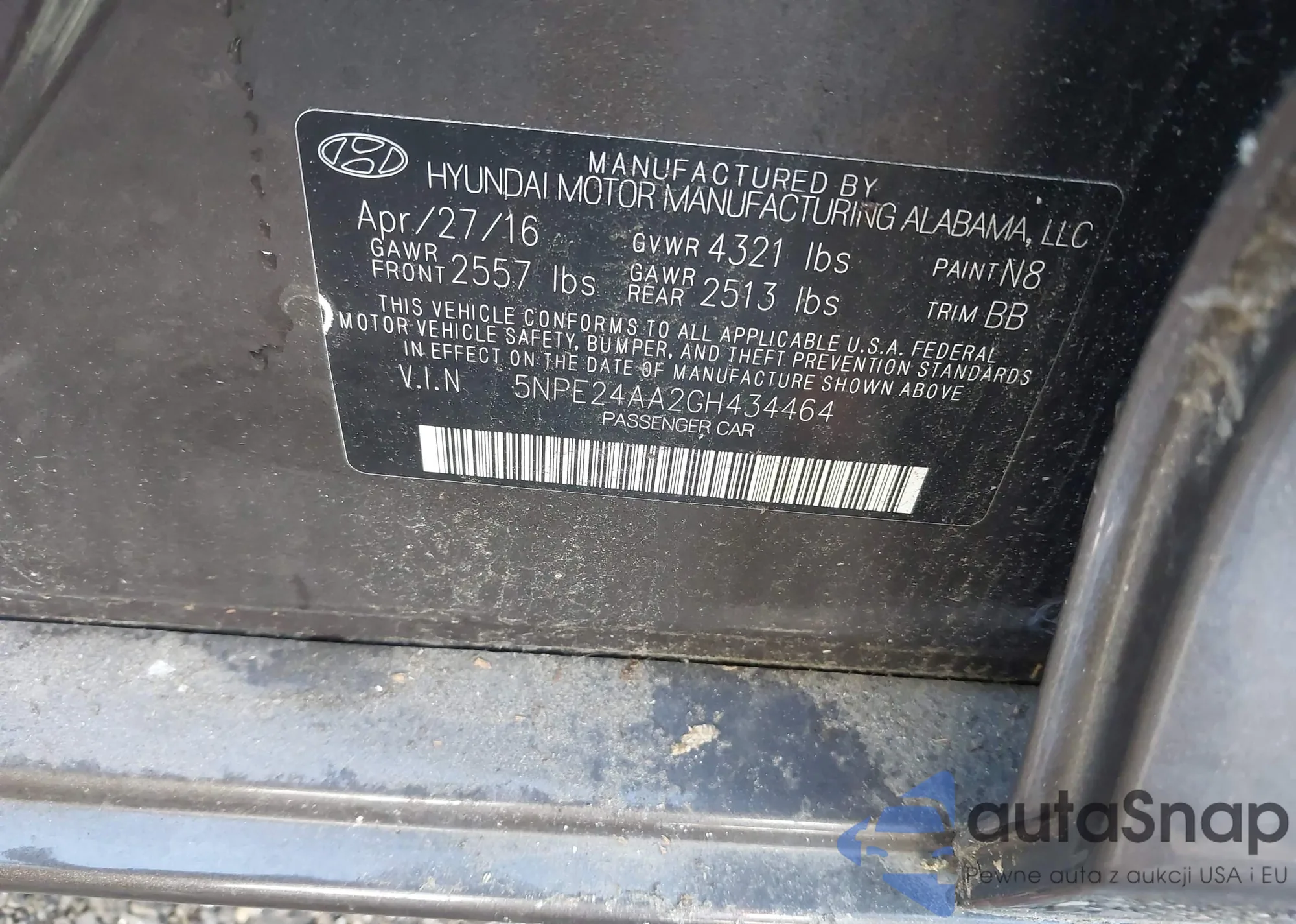 • VIN 5NPE24AA2GH434464