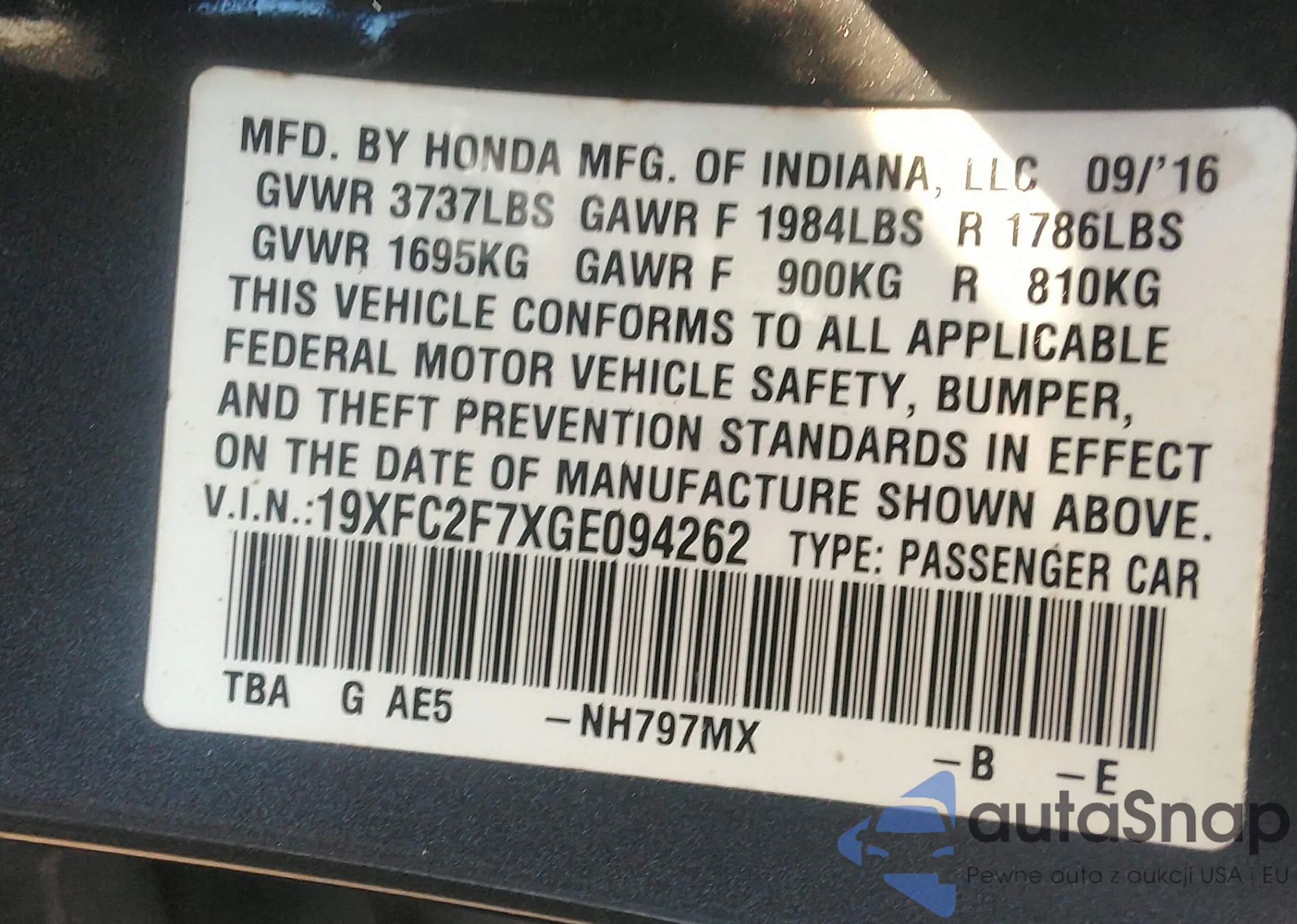• VIN 19XFC2F7XGE094262