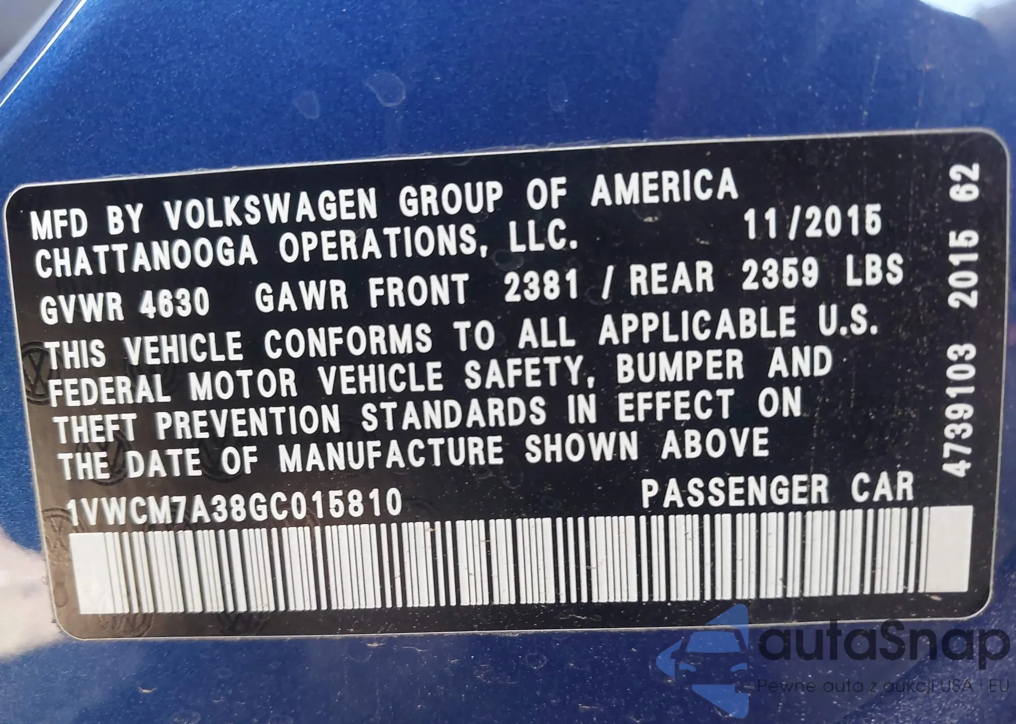 • VIN 1VWCM7A38GC015810