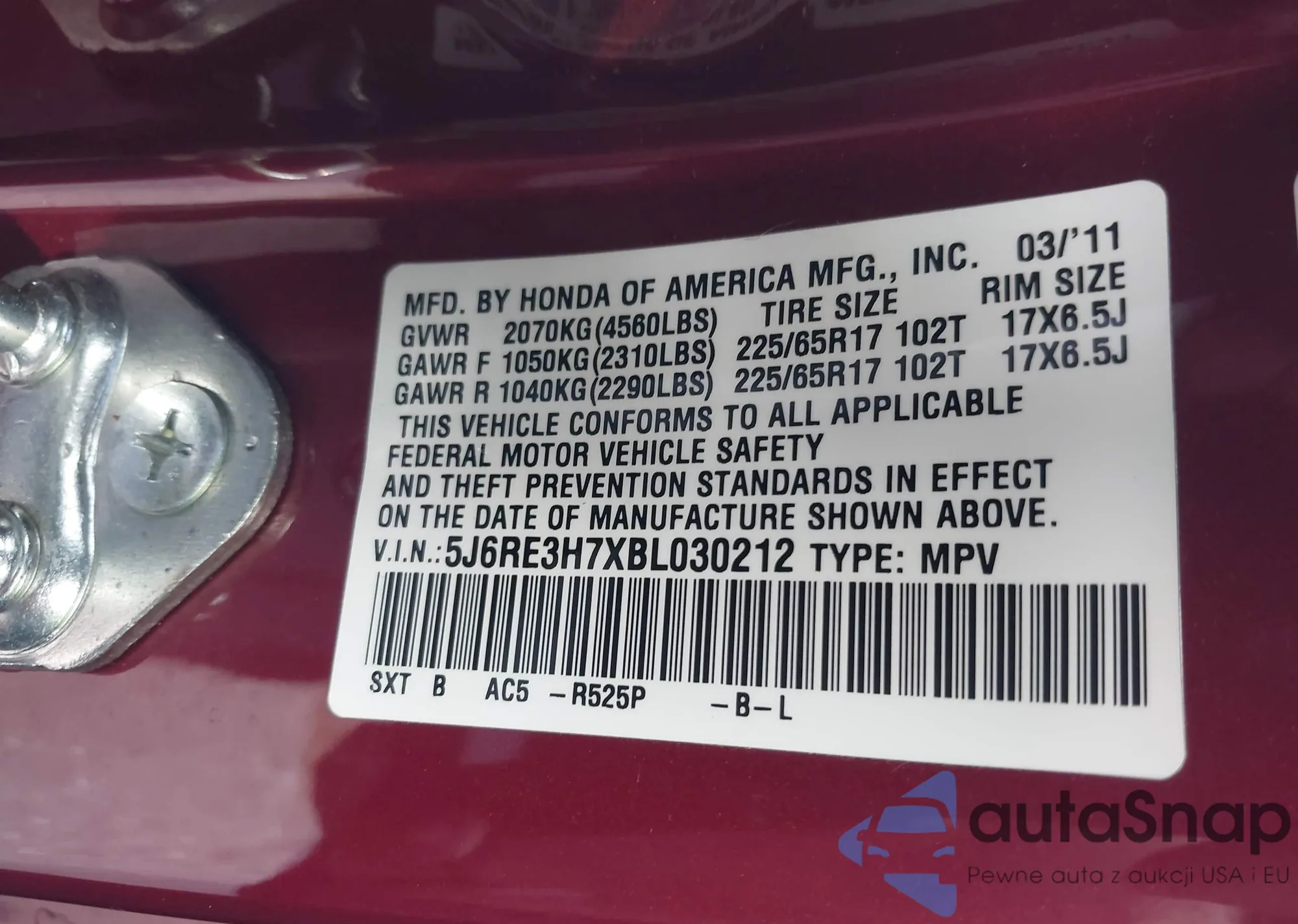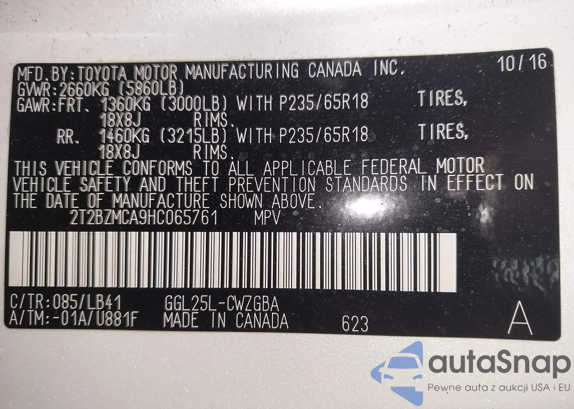 • VIN 2T2BZMCA9HC065761
