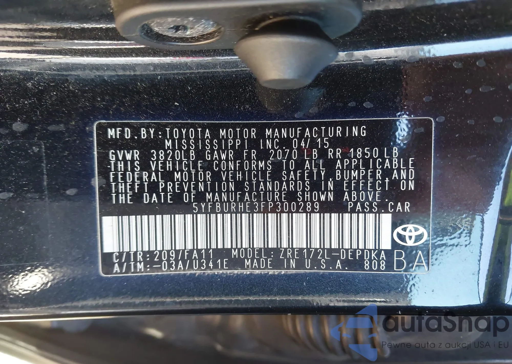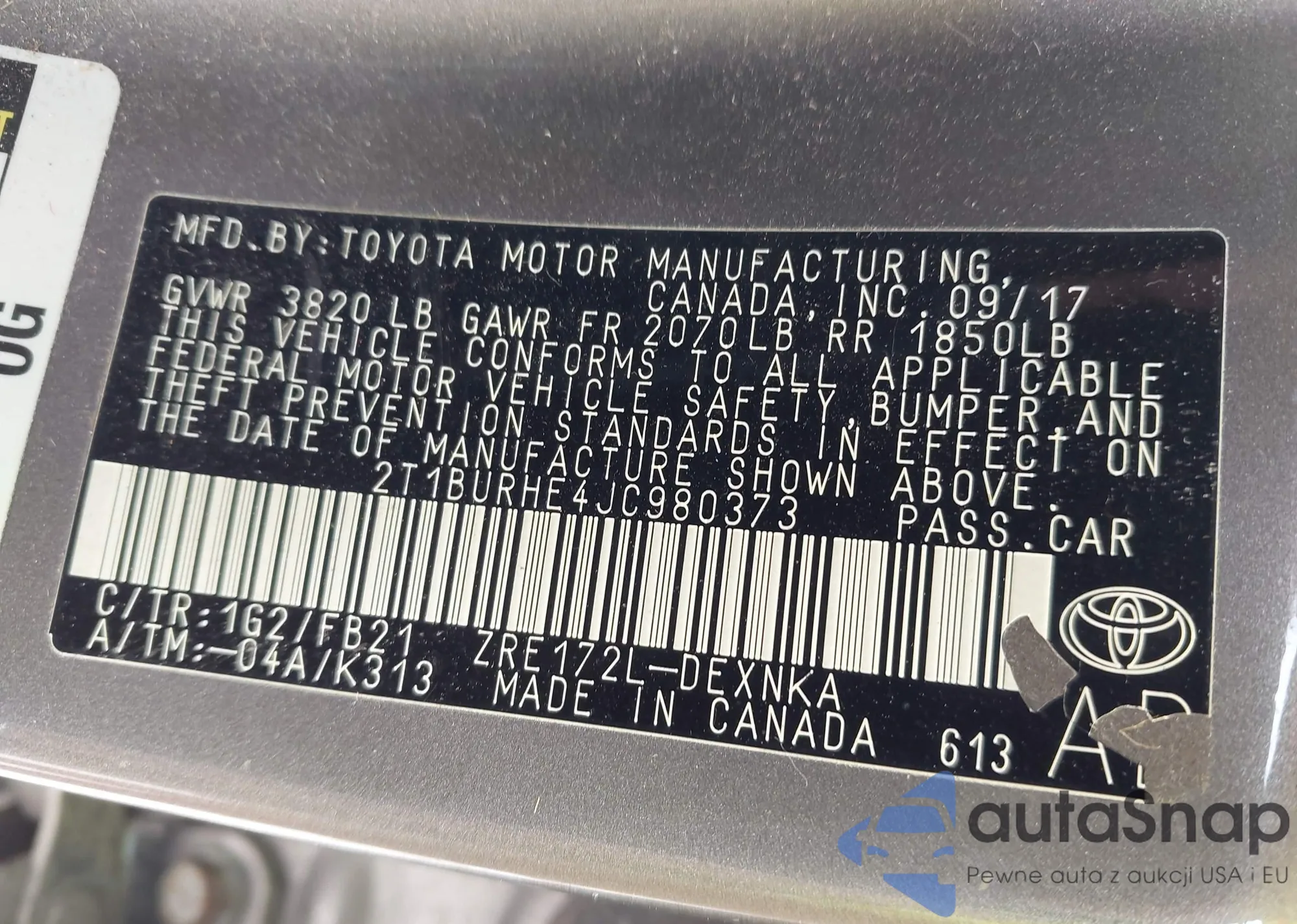 • VIN 4T1B11HK7JU574375
