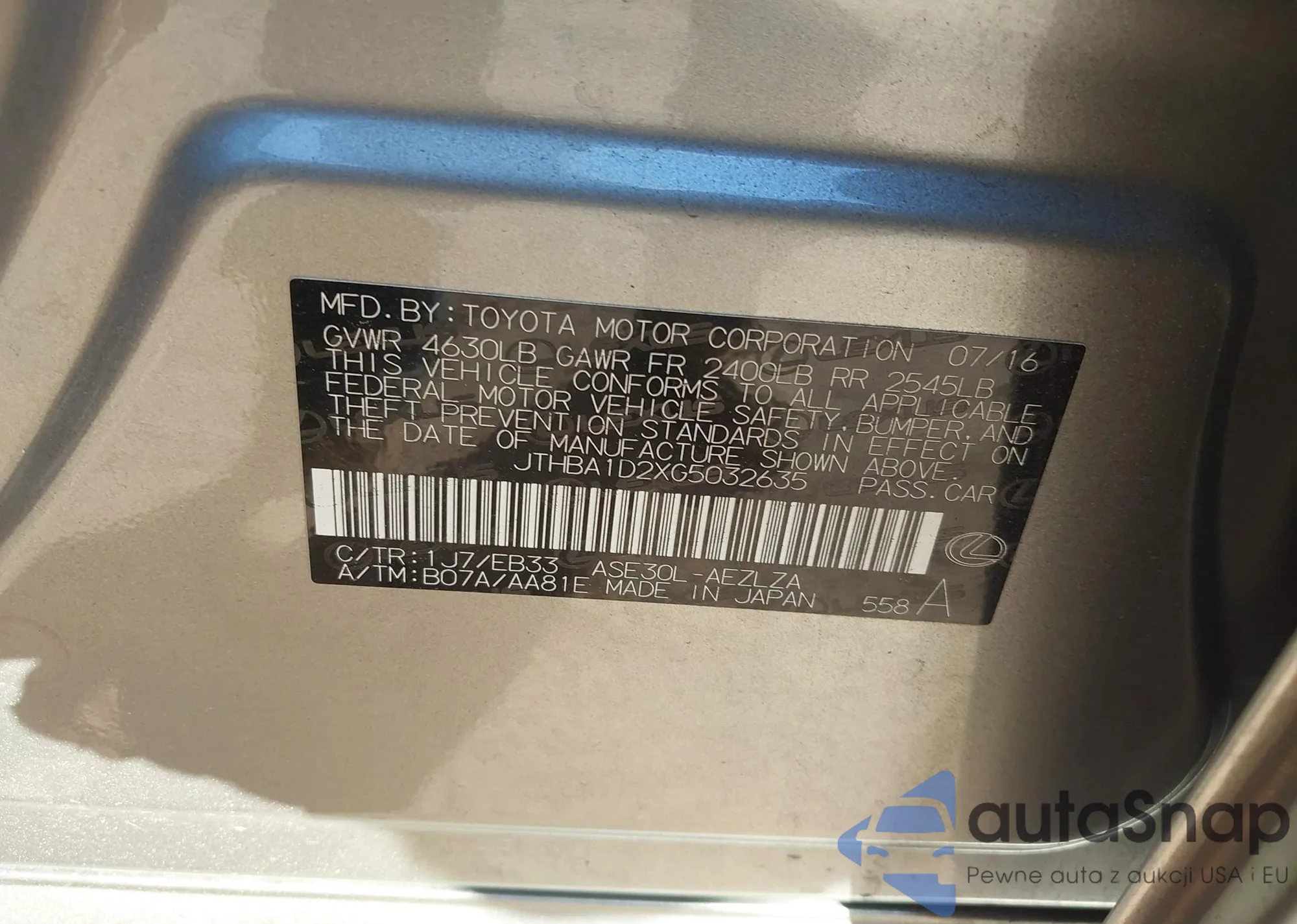 LOT: 43478246 VIN: 2T1BURHE4JC980373