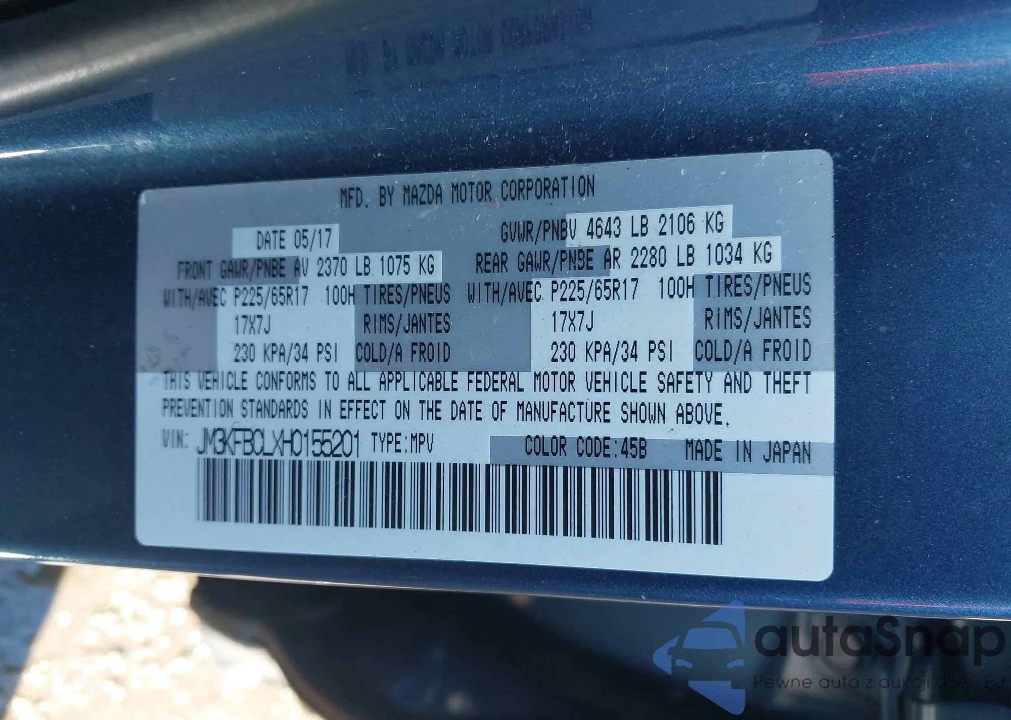 LOT: 43412033 VIN: JM3KFBCL4R0481741