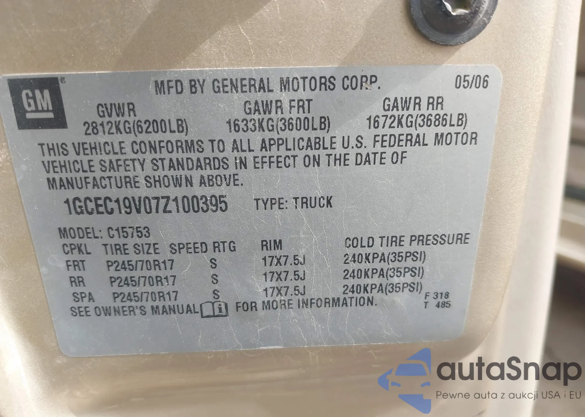 LOT: 43410850 VIN: 1GCEC19V07Z100395