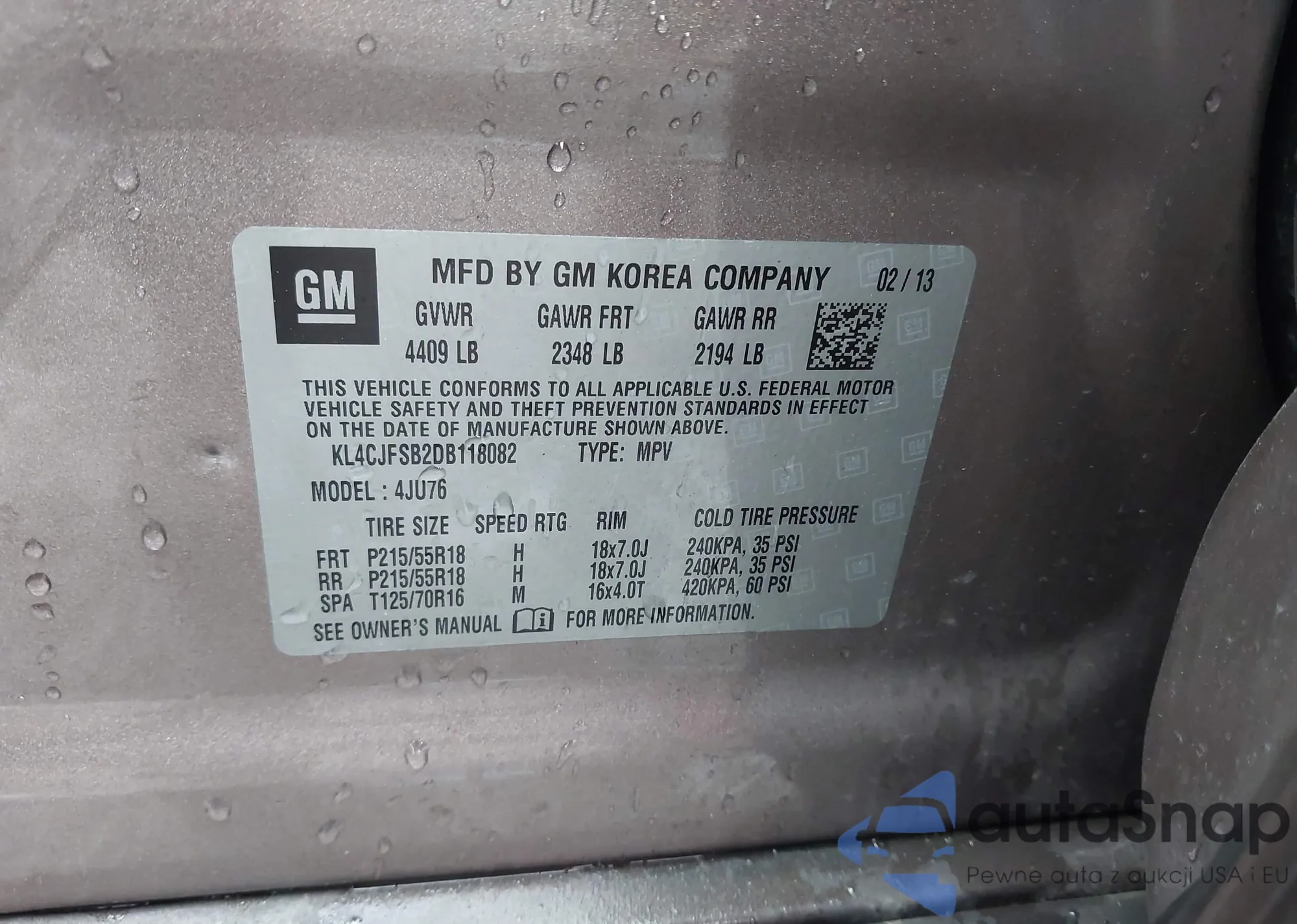 LOT: 43413748 VIN: 5XYKU3A24DG373864