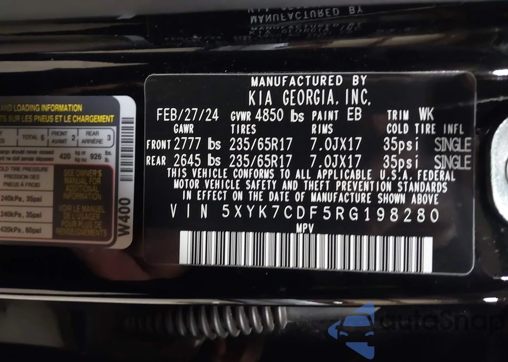 • VIN 5XYK7CDF5RG198280