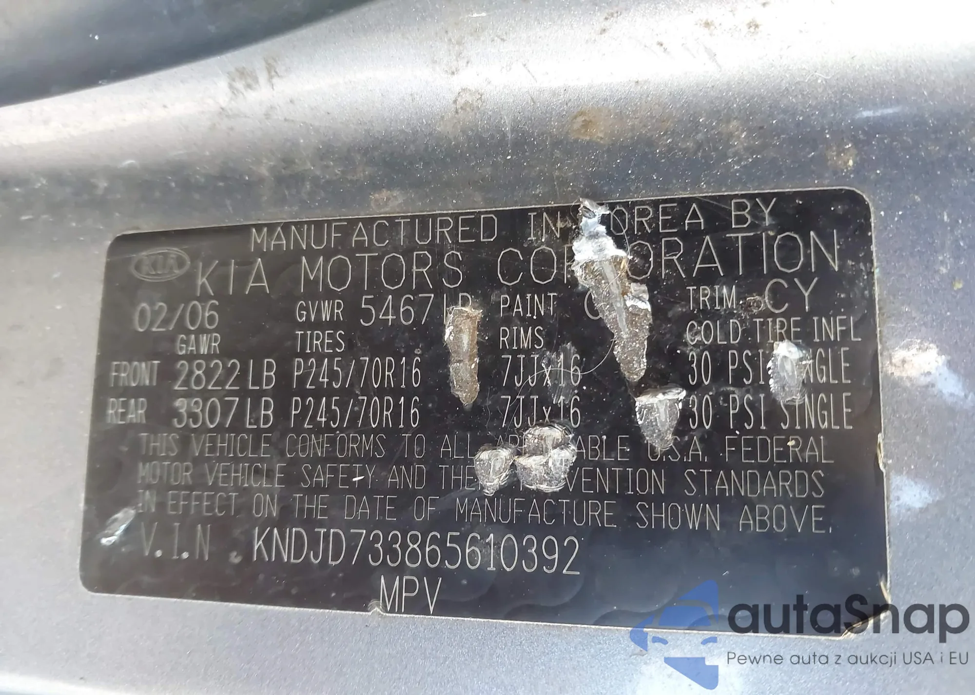 LOT: 43406167 VIN: KNDJD733865610392