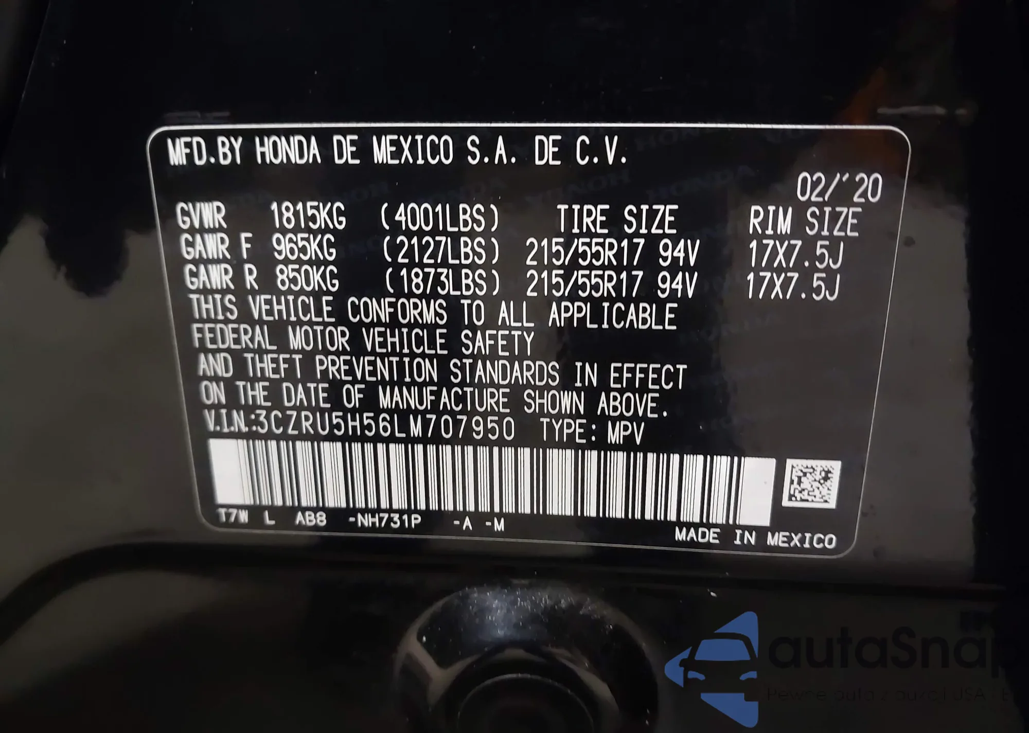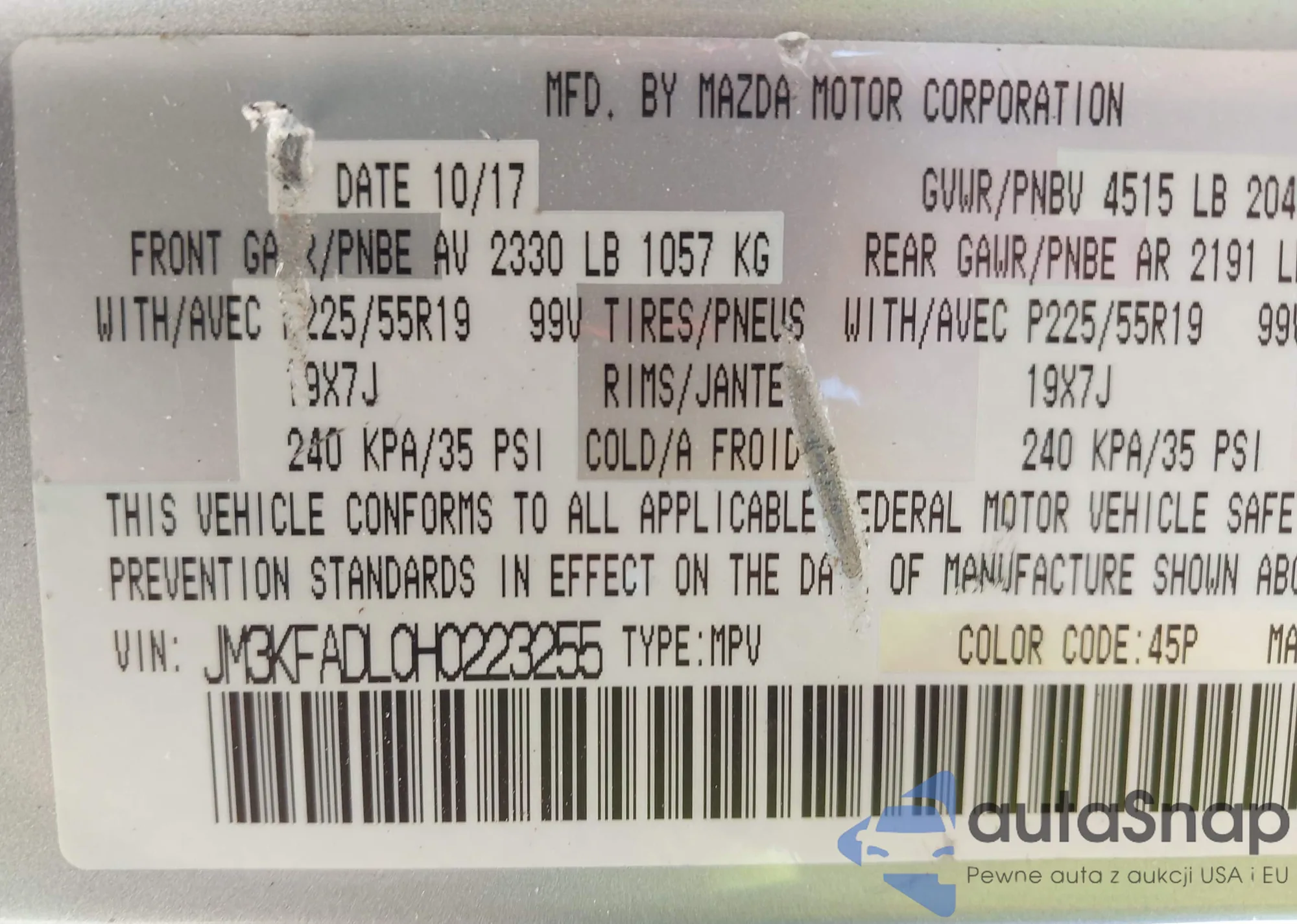 LOT: 43441953 VIN: JM3KFADL0H0223255