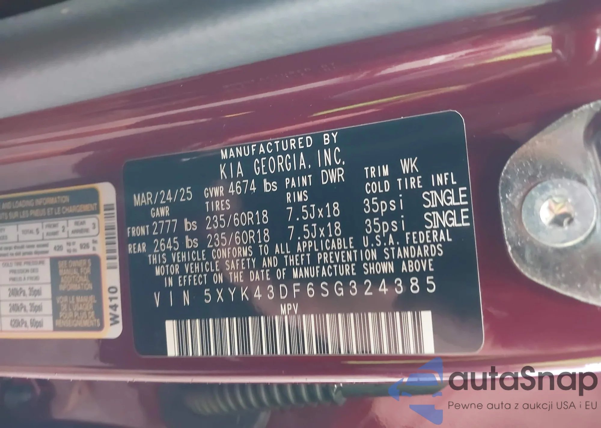 • VIN 5XYK43DF6SG324385