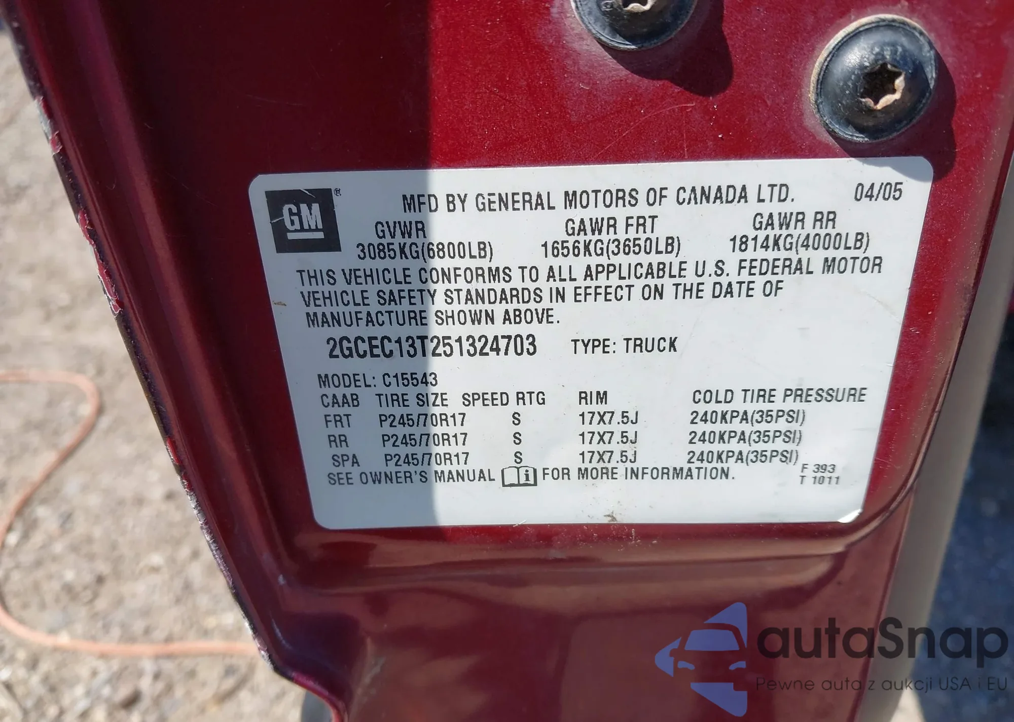 • VIN 2GCEC13T251324703