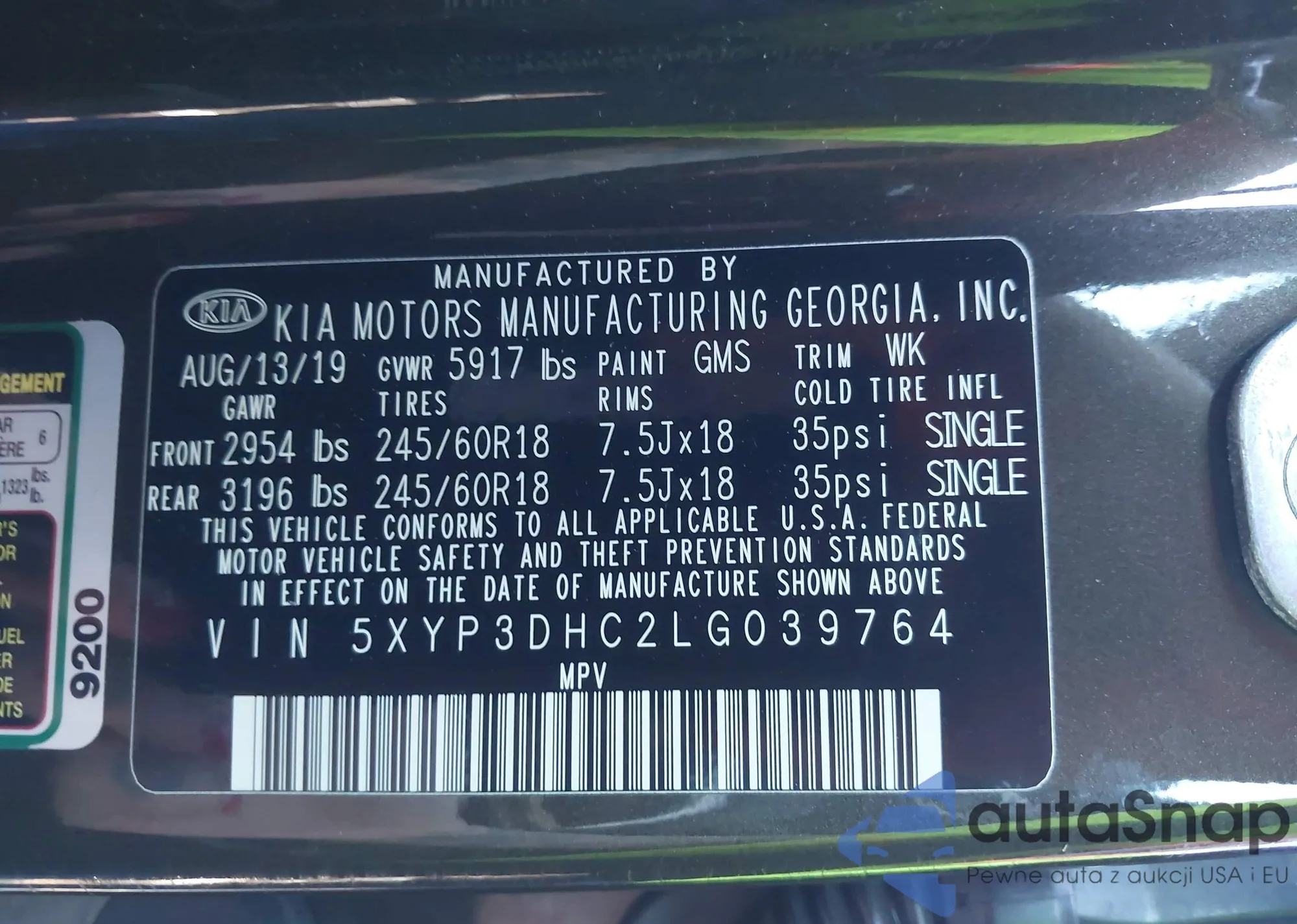 • VIN 5XYP3DHC2LG039764