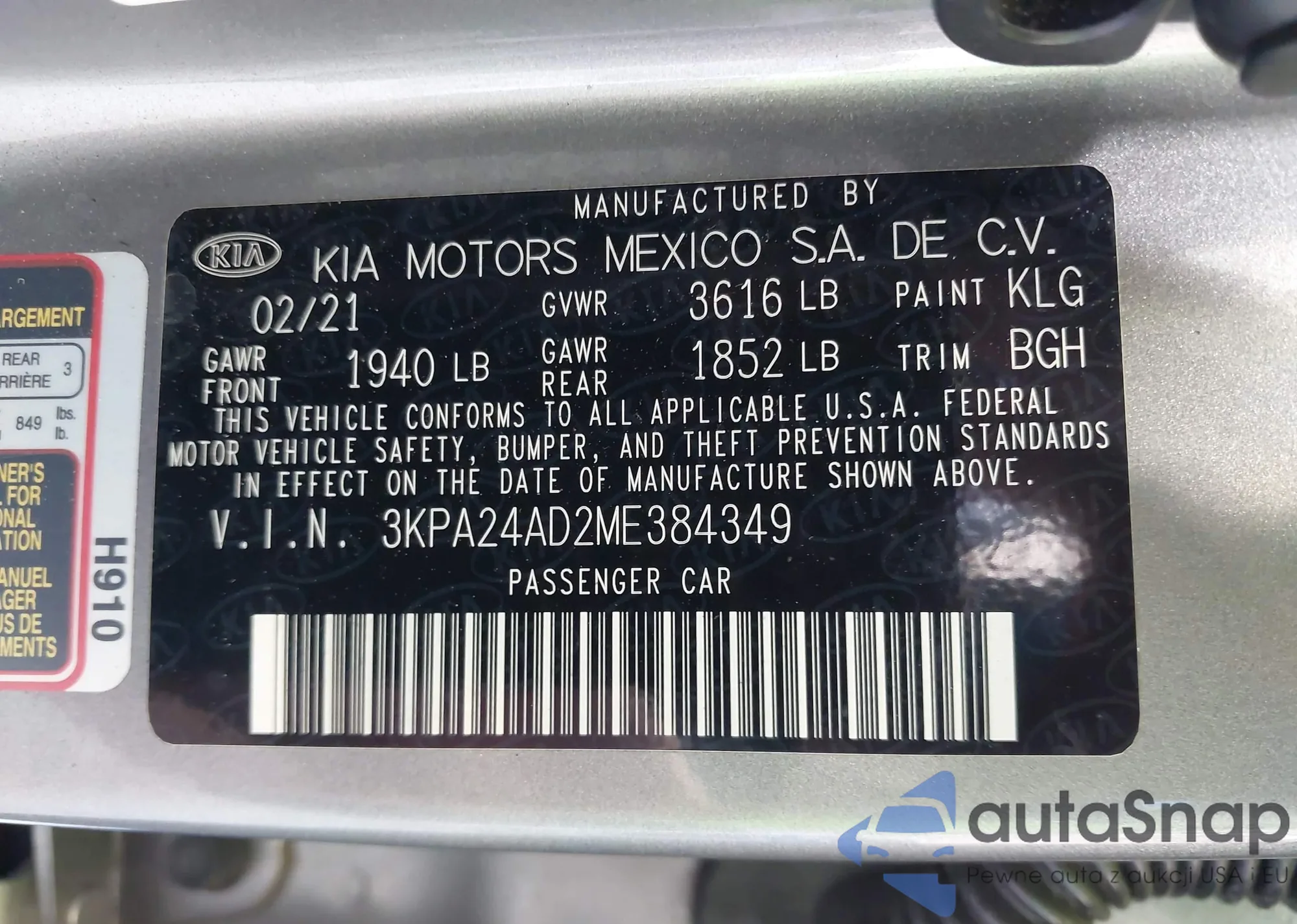 • VIN 3KPA24AD2ME384349