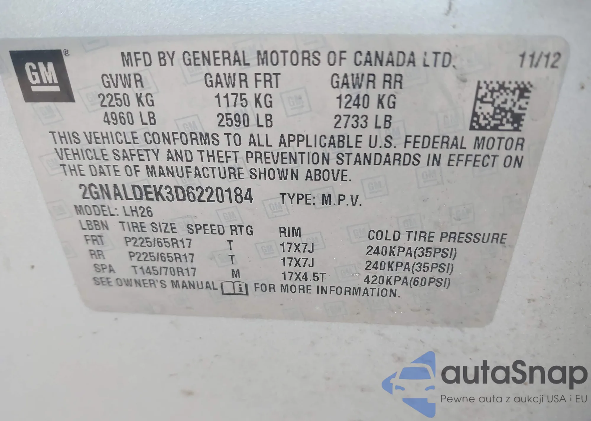 LOT: 43440232 VIN: KMHDH4AE8CU345930