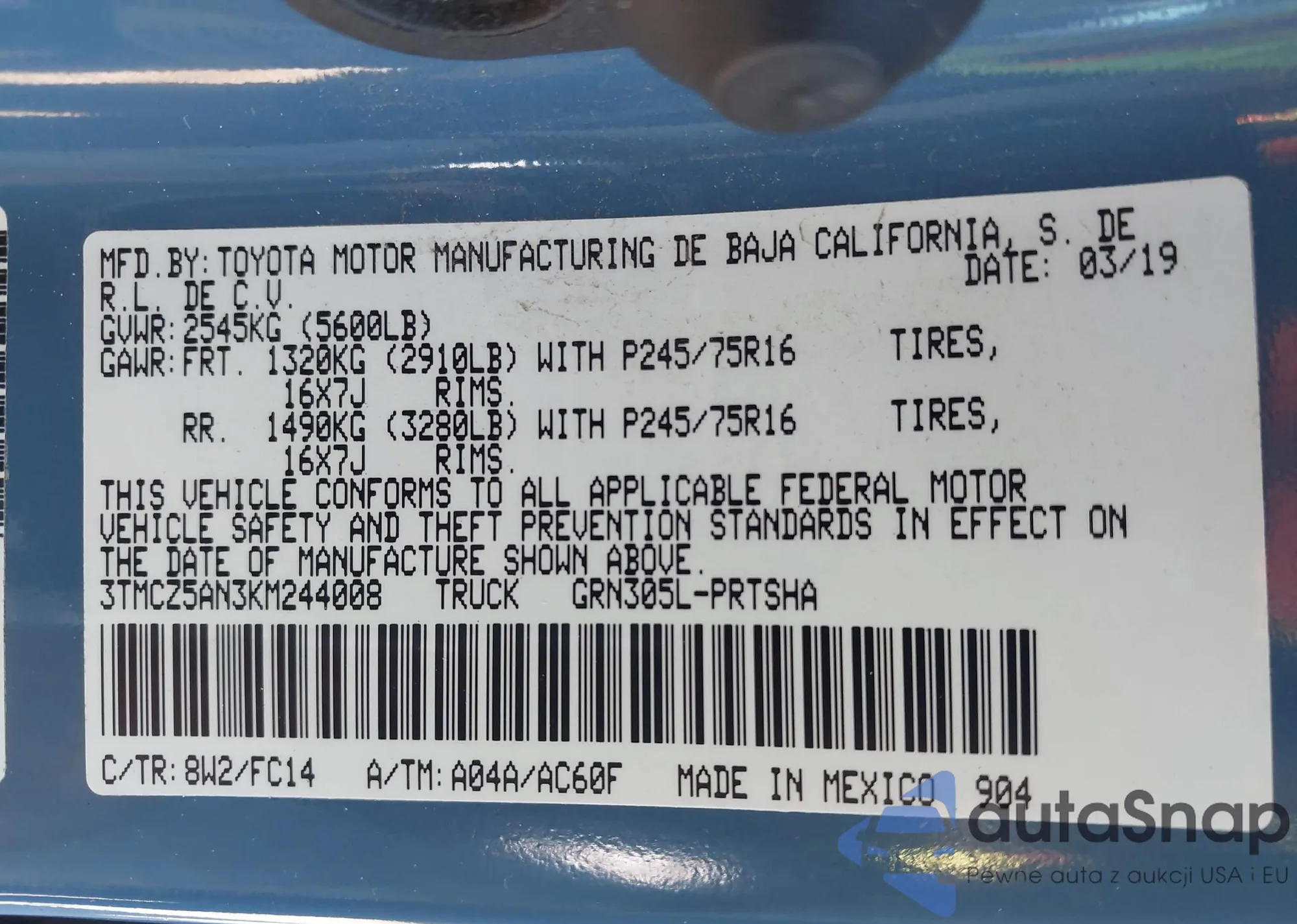 • VIN JTDS4RCE3LJ041715