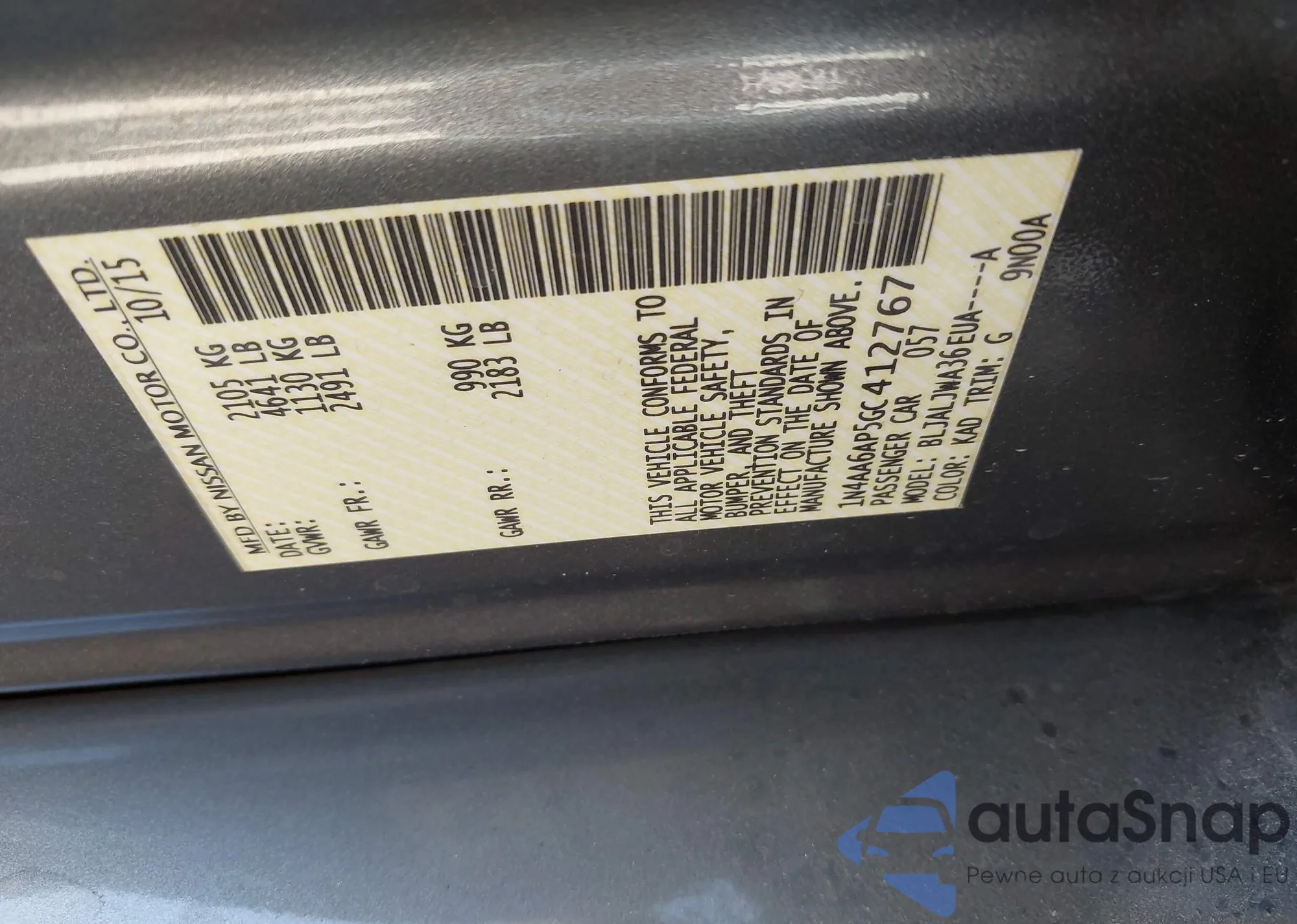 • VIN 1N4AA6AP5GC412767