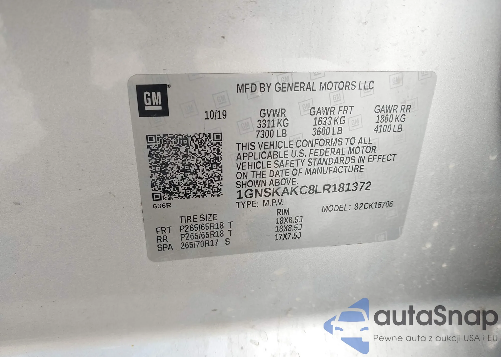 LOT: 43215929 VIN: 1GYKPURL4SZ304269