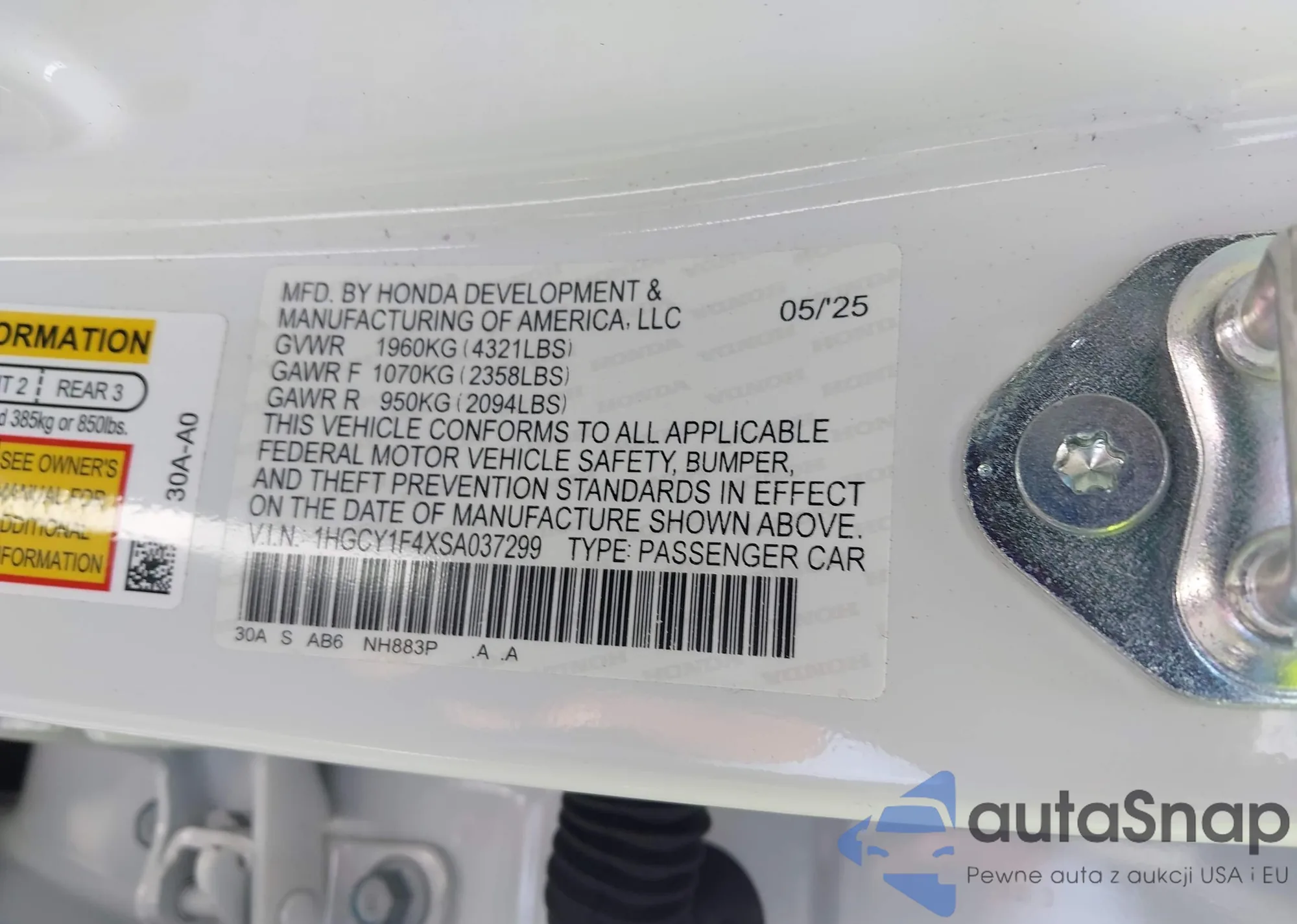 LOT: 43174439 VIN: 1HGCR3F88FA025296