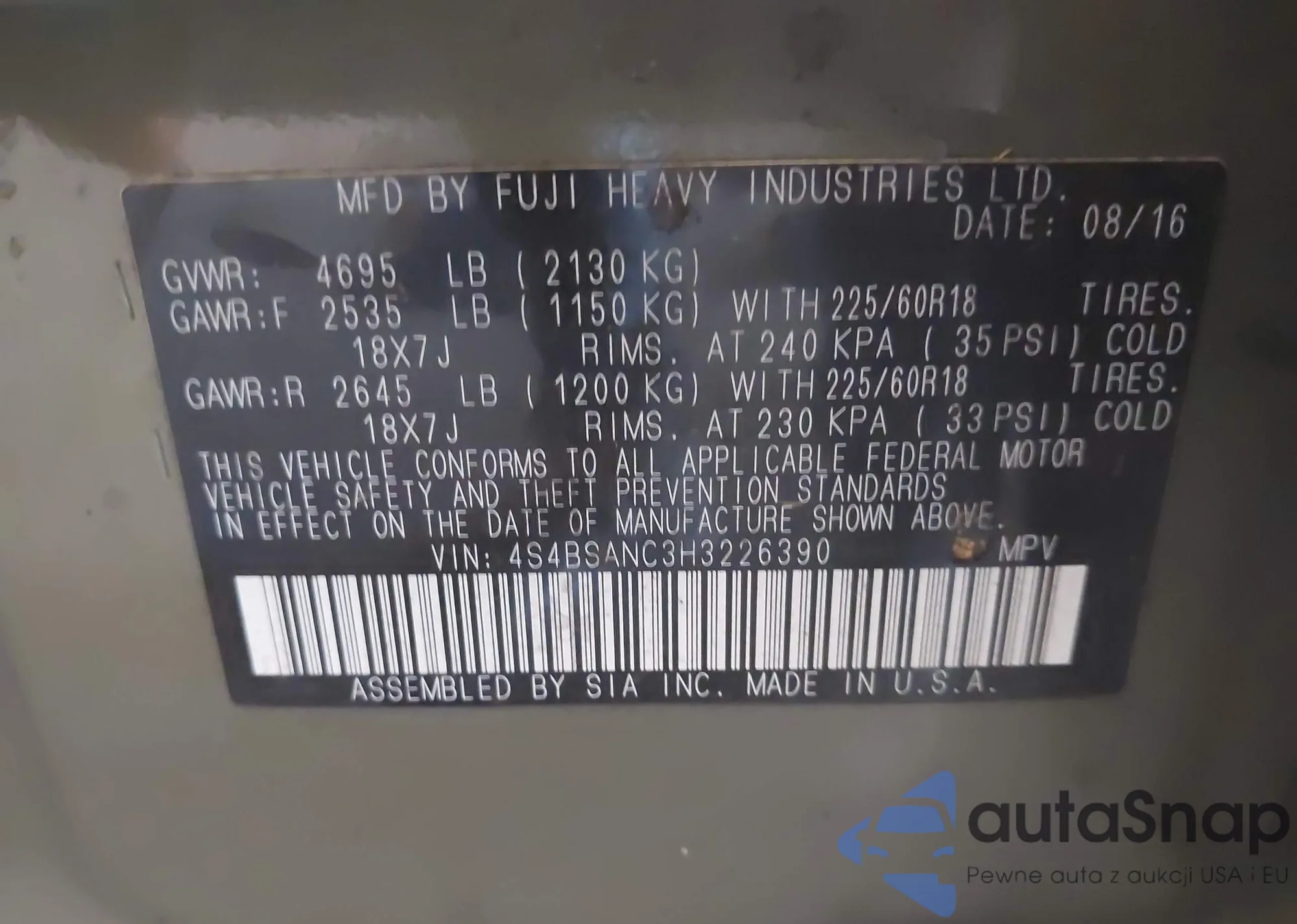 • VIN 4S4BSANC3H3226390