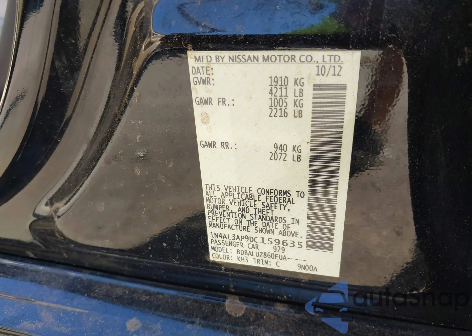 • VIN 1N4AL3AP9DC159635