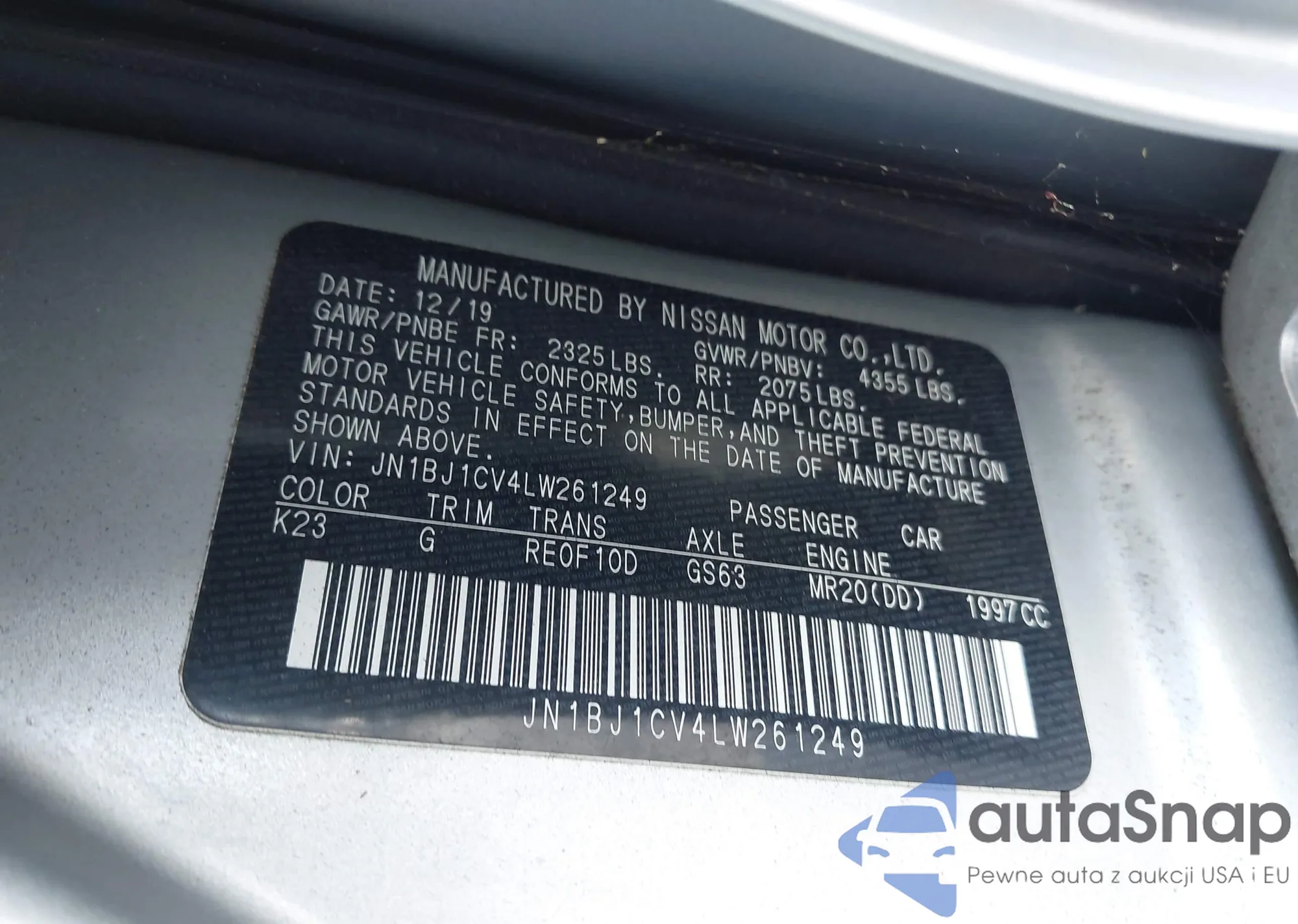 LOT: 43270294 VIN: JN1BJ1CV4LW261249
