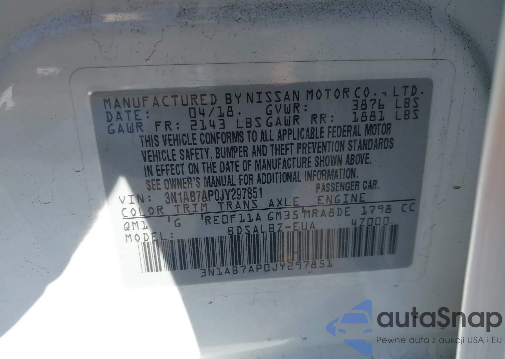 • VIN 3N1AB7AP0JY297851