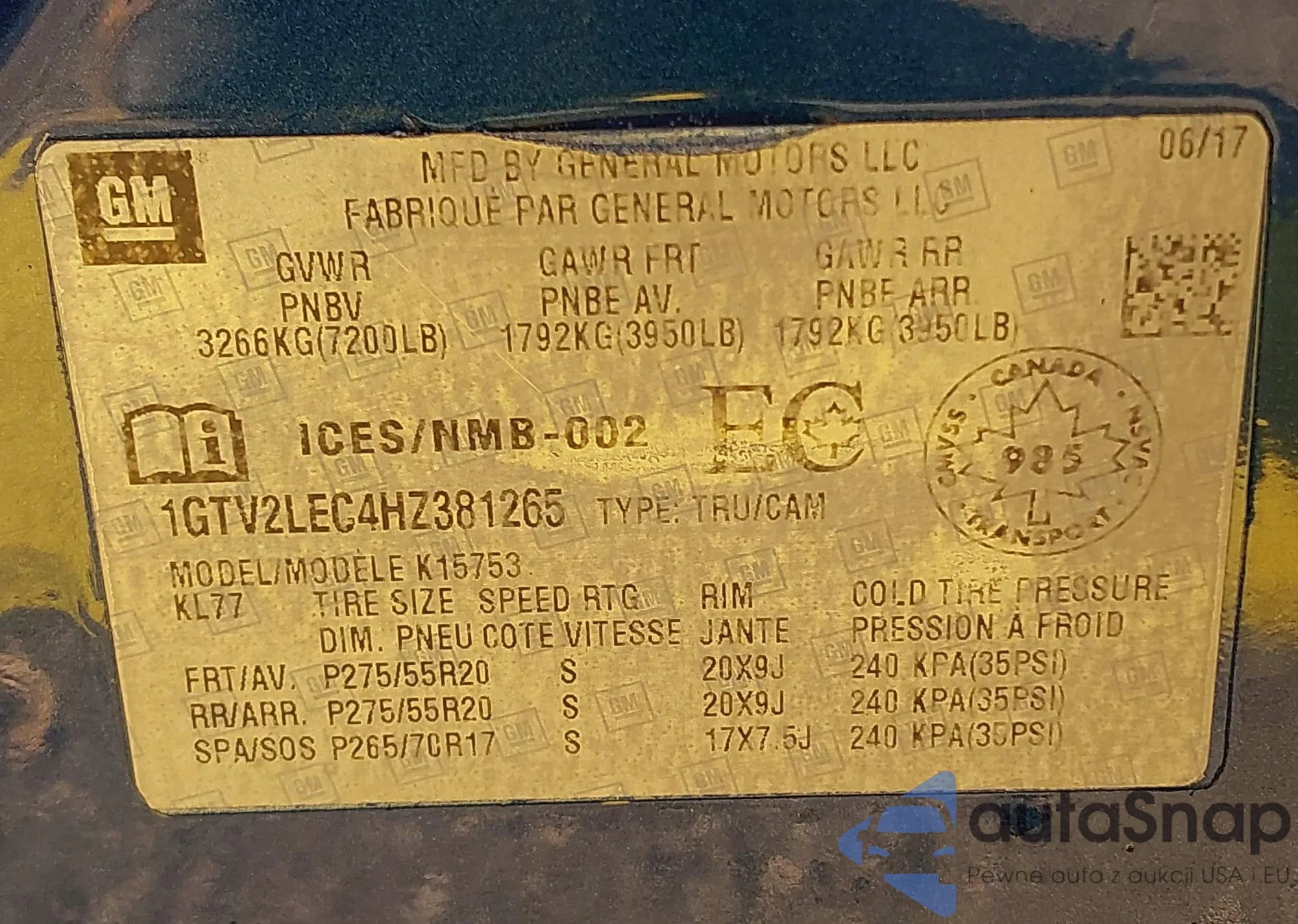 • VIN 1GTV2LEC4HZ381265