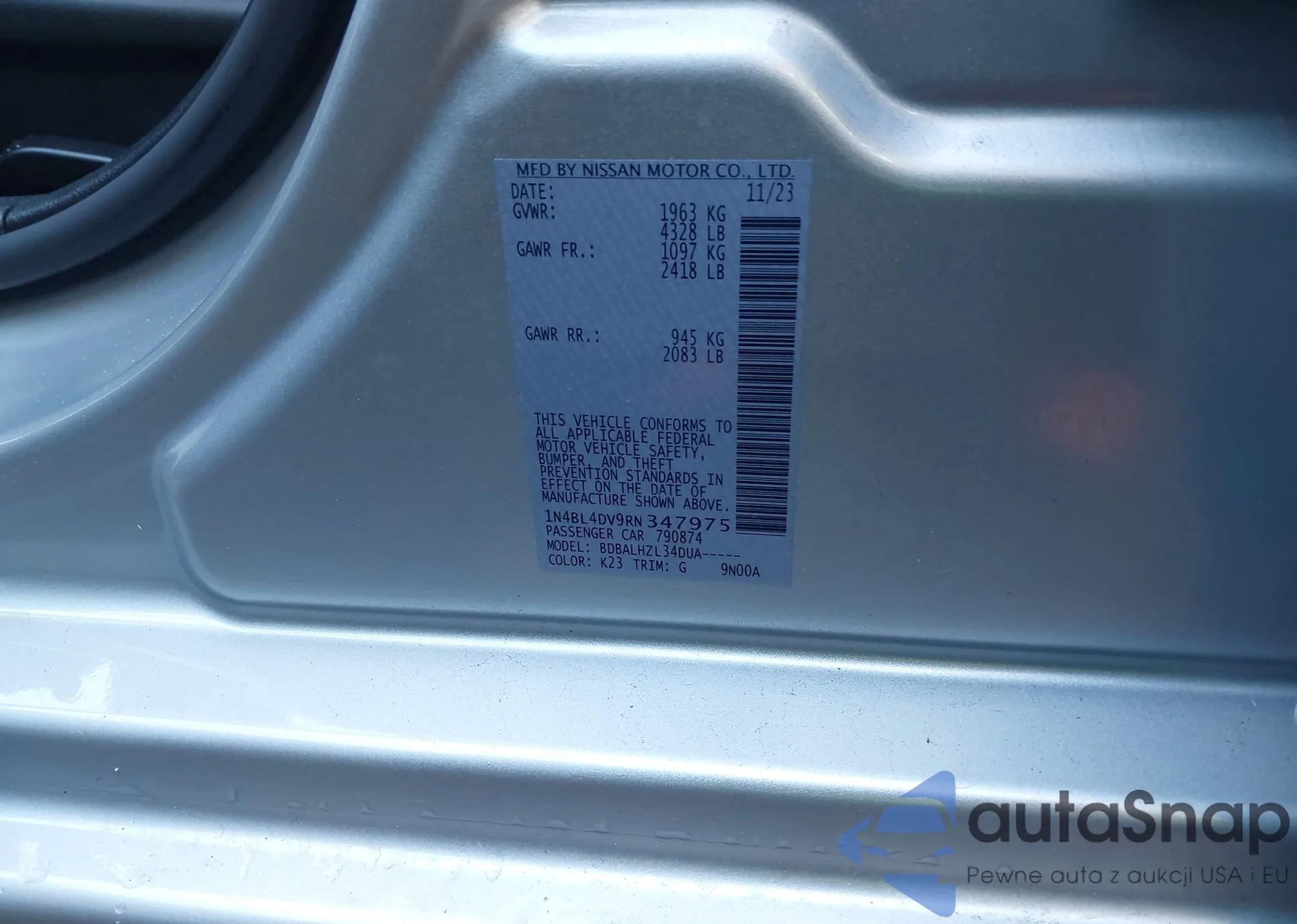 LOT: 43508900 VIN: 3N1AB7AP0JY297851